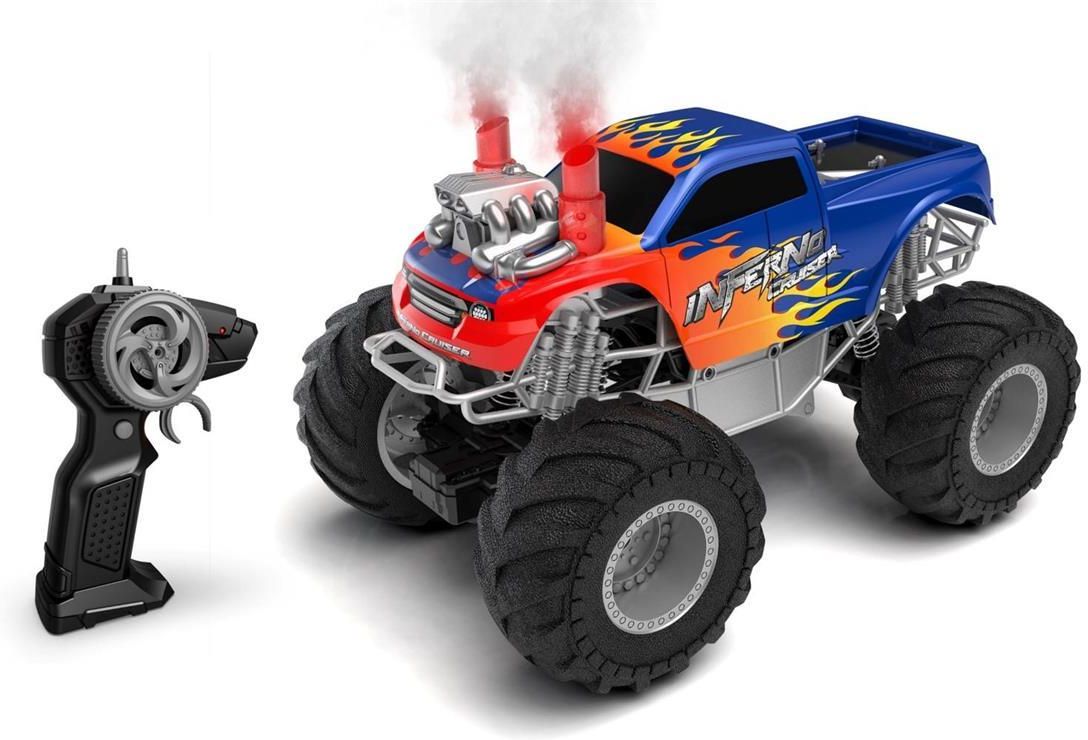 Podejmij każde wyzwanie terenowe z INFERNO CRUISER 4x4. Ta wyjątkowo duża bestia jest wyposażona w gigantyczne opony, które chwytają, wspinają się i pokonują każdy teren. Ale to nie wszystko, z wydechu wydobywa się sztuczny dym i płomienie. Sztuczny dym i płomienie są radykalne i realistyczne, a także całkowicie bezpieczne, ponieważ należy do nich dodać wodę z kranu. INFERNO CRUISER ma proporcjonalny układ kierowniczy zapewniający precyzyjną kontrolę. Wyjątkowe możliwości terenowe dzięki przedniemu i tylnemu zawieszeniu oraz amortyzującym oponom antypoślizgowym. Ogromne koła i solidne nadwozie chronią samochód przed uderzeniami. Od 8 lat. - rozmiar: 42 cm długości, skala 1:8 - częstotliwość: 2,4 GHz - pilot wymaga 2 baterii AA (brak w zestawie) - pojazd wykorzystuje akumulator Lipo 3,7 V, 500 mAh (w zestawie) - czas ładowania: ok. 140 minut - czas jazdy na jednym ładowaniu: 15-20 minut - prędkość: do 12 km/h - zasięg: do 20 metrów