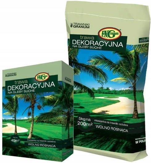 . Mieszanka nasion traw gazonowych dywanowych DEKORACYJNA Opakowanie: kartonik 0,9kg [ wskazana na gleby suche ] [ bez udziału życic w składzie ] MIESZANKI TRAW GAZONOWE wykorzystywane są do zakładania trawników, stanowiących tło dla wszelkich obiektów architektonicznych. Do sporządzania tych mieszanek stosuje się odmiany traw, które w odróżnieniu do form pastewnych charakteryzują się wolnym tempem wzrostu oraz posiadają doskonałe walory dekoracyjne takie jak: drobna blaszka liściowa, intensywny zielony kolor, odporność na niskie i częste koszenie, dobre zagęszczenie trawnika oraz zadarnianie obsianego terenu. Gatunki traw użyte w mieszankach gazonowych muszą być również wieloletnie oraz odporne na wymarzanie. MIESZANKI DYWANOWE Są to powierzchnie najbardziej dekoracyjne, cechują się żywozieloną barwą oraz delikatnym ulistnieniem. Trawniki dywanowe ze względu na swoje reprezentacyjne właściwości należy odpowiednio pielęgnować, regularnie podlewać, często kosić oraz zasilać nawozami wieloskładnikowymi. DEKORACYJNA Ta znakomita kompozycja traw jest przeznaczona na reprezentacyjne tereny i rzadziej użytkowane przydomowe trawniki. Artykuł odznacza się gęstą darnią, intensywnie zielona barwą oraz dużą odpornością na wymarzanie, dzięki czemu utrzymuje zielony kolor przez cały rok. Trawnik gazonowy odznacza się wolnym odrostem, wymaga starannej pielęgnacji. Wysokość koszenia 3-4cm. Mieszanka dostępna w kilku formatach opakowania: Kartonik 0,9 kg, Worek papierowy 5 kg Skład mieszanki Kostrzewa czerwona kępowa Rapsodia - 25% Kostrzewa czerwona rozłogowa Dark - 10% Kostrzewa czerwona rozłogowa Rossinante/Heidrun - 45% Kostrzewa szczeciniasta/murawowa Ridu/Nordic - 20% *skład mieszanki może się nieznacznie różnić w zależności od partii towaru