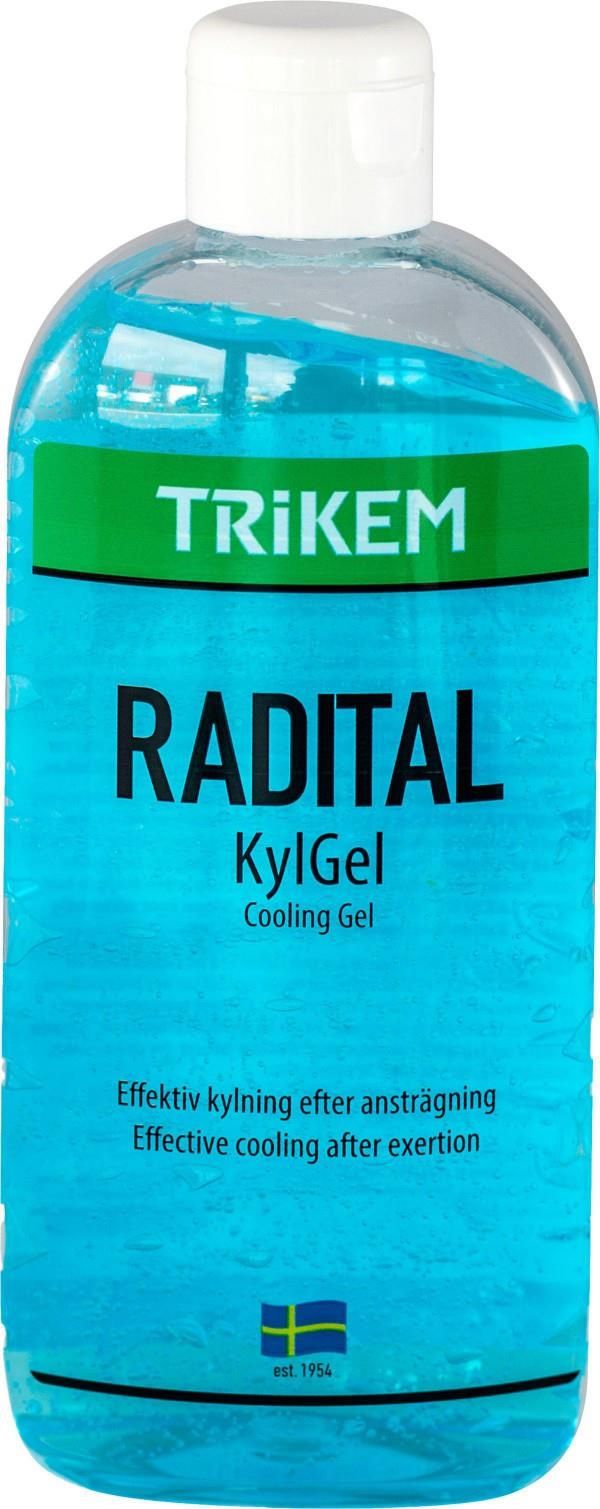 "Szybko działający żel chłodzący do mięśni, stawów, ścięgien i więzadeł. Gładka forma żelu, która ułatwia aplikację, działa natychmiast i jest łatwa do zabrania ze sobą. Stosuj Radital Cooling Gel po treningu, zawodach lub w razie potrzeby. 96-godzinny zakaz startów dla koni".