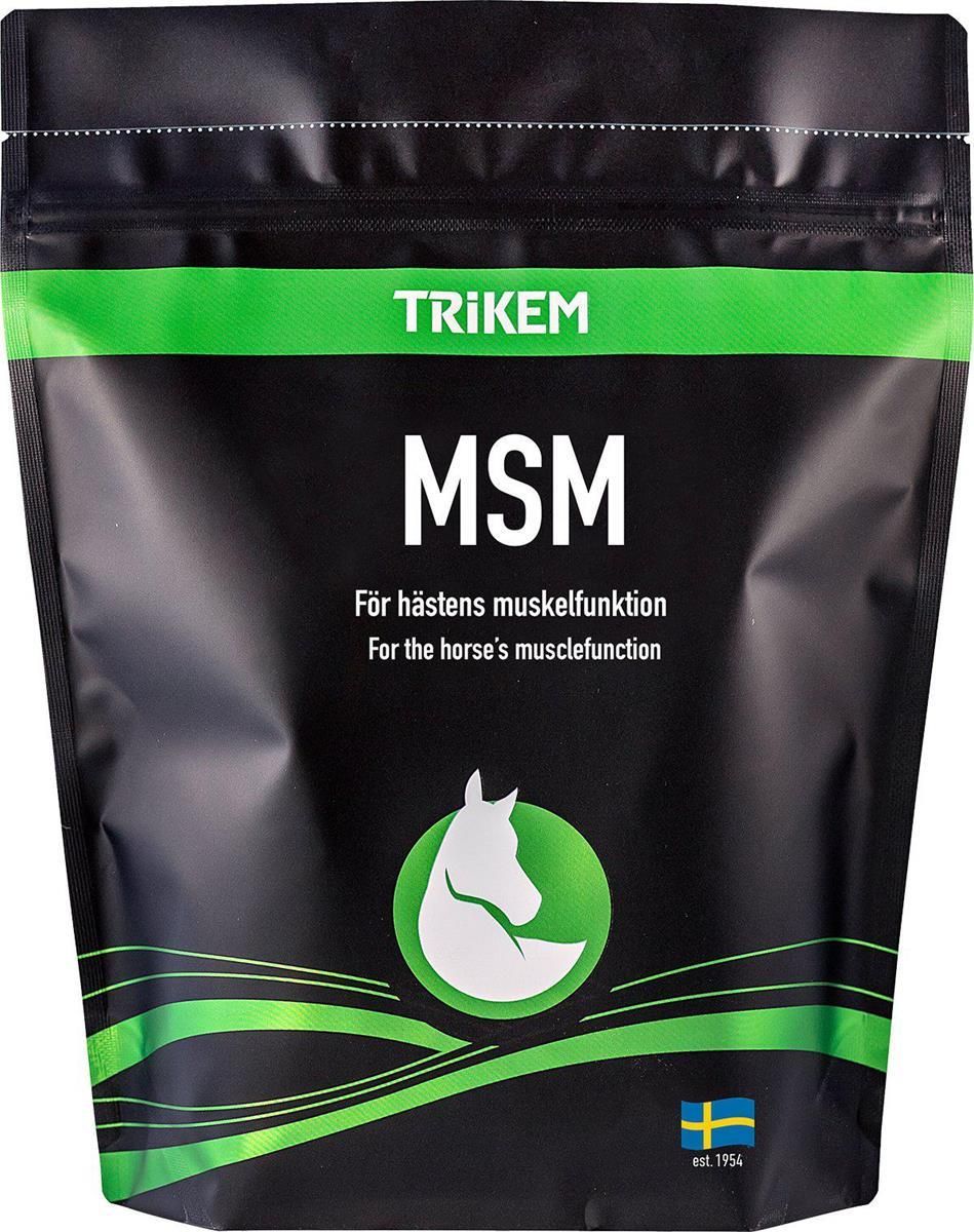 "MSM składa się z organicznego związku siarki - metylosulfonylometanu. MSM bierze udział w tworzeniu kolagenu i keratyny w organizmie. Kolagen z kolei bierze udział w budowie mięśni, stawów, sierści i skóry. MSM bierze również udział w tworzeniu nowych komórek w tkance mięśniowej, kostnej i łącznej. Tkanka łączna sprawia, że ścięgna i więzadła są mocne i elastyczne. Może być podawany koniom, które mają problemy z mięśniami, stawami, skórą i sierścią".