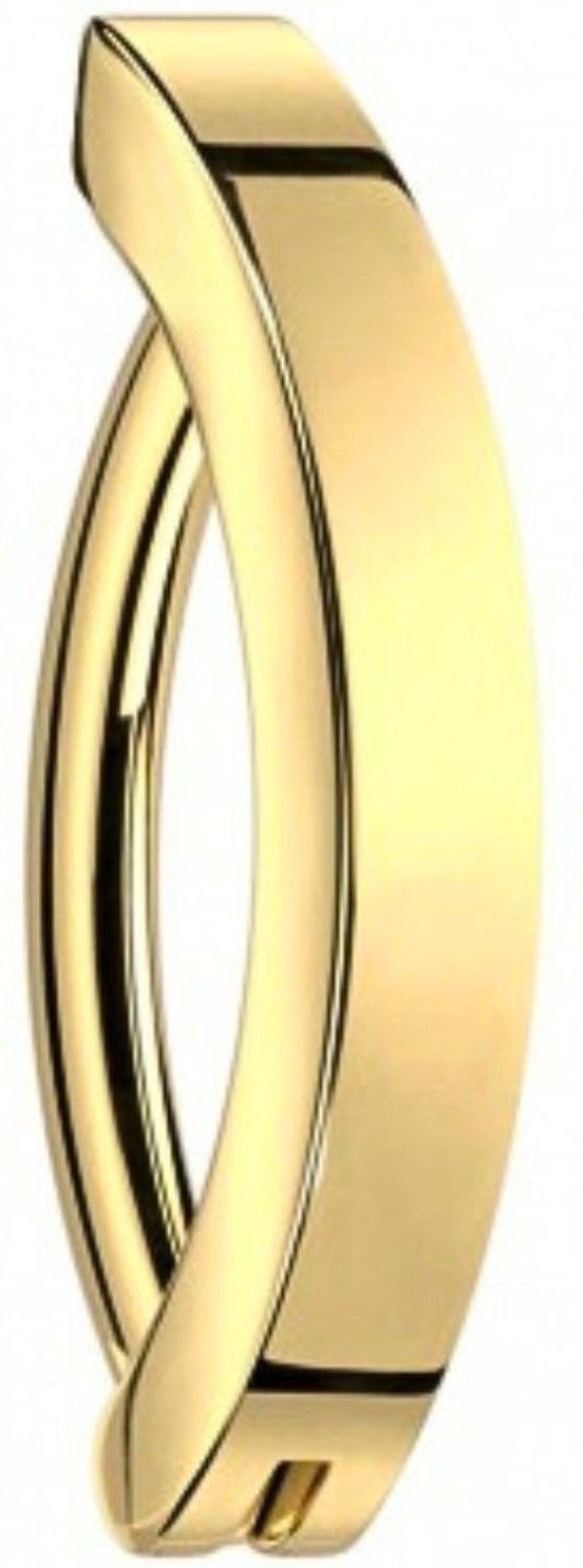 Minimalistyczny kolczyk do pępka typu clicker to nowoczesna alternatywa dla klasycznych bananów. Gładki półpierścień tworzy czystą, elegancką linię, która subtelnie podkreśla piercing i pięknie odbija światło. To biżuteria, która świetnie wygląda zarówno w codziennych stylizacjach, jak i w połączeniu z letnimi outfitami czy strojem kąpielowym. Kolczyk wykonany jest z tytanu G23 klasy medycznej, cenionego w piercingu za lekkość, trwałość i wysoką odporność na korozję. Materiał ten jest przyjazny dla skóry, dlatego często polecany jest również do świeżych przekłuć oraz dla osób wrażliwych na nikiel. Dostępny w trzech kolorze złotym. Złoty kolor uzyskano dzięki trwałej powłoce PVD, która chroni powierzchnię przed matowieniem i dobrze sprawdza się nawet w kontakcie z wodą morską czy chlorowaną. Zapięcie clicker pozwala zamknąć kolczyk jednym ruchem – bez skręcania kulek i bez obawy o zgubienie elementów. 💎 Prosty, elegancki detal, który podkreśla piercing i zapewnia komfort noszenia każdego dnia. Cechy produktu ✨ Materiał: tytan G23 (klasa medyczna, hipoalergiczny) Typ kolczyka: clicker do pępka Wymiary ozdoby: szerokość 2,6 mm, wysokość 15 mm Kolor kolczyka: srebrny / złoty / czarny Typ zapięcia: clicker (zatrzask) Lekki, wygodny i idealny do codziennego noszenia.