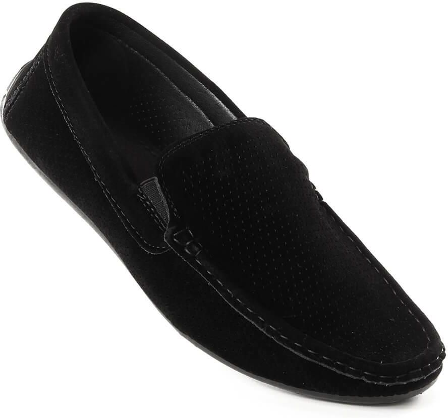 Zamszowe mokasyny męskie wsuwane ażurowe czarne News 4873 Inowrocław