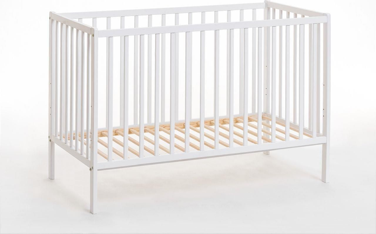 Niemowlęce łóżeczko CYPI II z litego drewna sosnowego Łóżeczko CYPI II zaprojektowane zostało z myślą o najmłodszych dzieciach. Te niemowlęce łóżeczko wykonane zostało z litego drewna sosnowego z lasów certyfikowanych przez FSC, wybarwionych lakierem ze standardem EN 71-3: 2013. Mebel dostępny jest białym macie, dzięki czemu pasować ono będzie do niemalże każdego wystroju pokoju. Drewniane łóżeczko CYPI II posiada trzy wyciągane szczebelki, a stelaż można zamocować na trzech różnych wysokościach. Wygodną opcją jest także funkcja wymontowania jednego boku, dzięki czemu łóżeczko może stanowić dostawkę do łóżka rodziców, bądź łóżko dziecka gdy podrośnie. Cechy produktu wykonane z litego drewna sosnowego wybarwione lakierem ze standarden EN kolor biały mat stelaż z naturalnego drewna sosnowego trzy wyciągane szczebelki opcja demontażu jednego boku możliwość montażu materaca na trzech wysokościach w opcji dodatkowej możliwość dokupienia materaca 120x60x10 w swojej ofercie posiadamy szeroki wybór mebli pozwalających na kompleksowe wyposażenie mieszkania.
