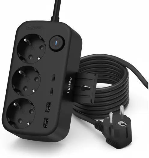 Opis Huslog PowerDock HUS1056 to nowoczesna i kompaktowa listwa zasilająca z 3 gniazdami sieciowymi AC oraz 4 portami USB (2x USB-A i 2x USB-C), która sprawdzi się zarówno w domu, biurze, jak i w podróży. Jej największe zalety to wbudowany uchwyt na telefon, możliwość montażu na ścianie oraz bezpieczna i wytrzymała konstrukcja z ognioodpornego tworzywa PP i przewodów miedzianych. Dzięki przełącznikowi ON/OFF zyskujesz pełną kontrolę nad zasilaniem, a kompaktowe wymiary i 1,4-metrowy kabel umożliwiają wygodne użytkowanie w każdym miejscu. H2: Parametry Model: HUS1056 Marka: Huslog Typ: Listwa zasilająca z USB i uchwytem na telefon Kolor: Czarny Maksymalna moc: 3680 W AC: 3 × 230 V ~ 16 A (Schuko) USB: – 2 × USB-A: 5 V / 2.4 A – 2 × USB-C: 5 V / 3 A – Maks. natężenie łączne USB: 5 V / 3.4 A Długość przewodu: 1.4 m (3G 1.5 mm²) Materiał: Ognioodporne tworzywo PP + przewody miedziane Włącznik: 1 × główny ON/OFF Funkcje dodatkowe: Uchwyt na telefon, otwór montażowy Wymiary: 150 × 78 × 44 mm Waga: 364 g EAN: 5902983641483 W zestawie: Listwa PowerDock + instrukcja obsługi