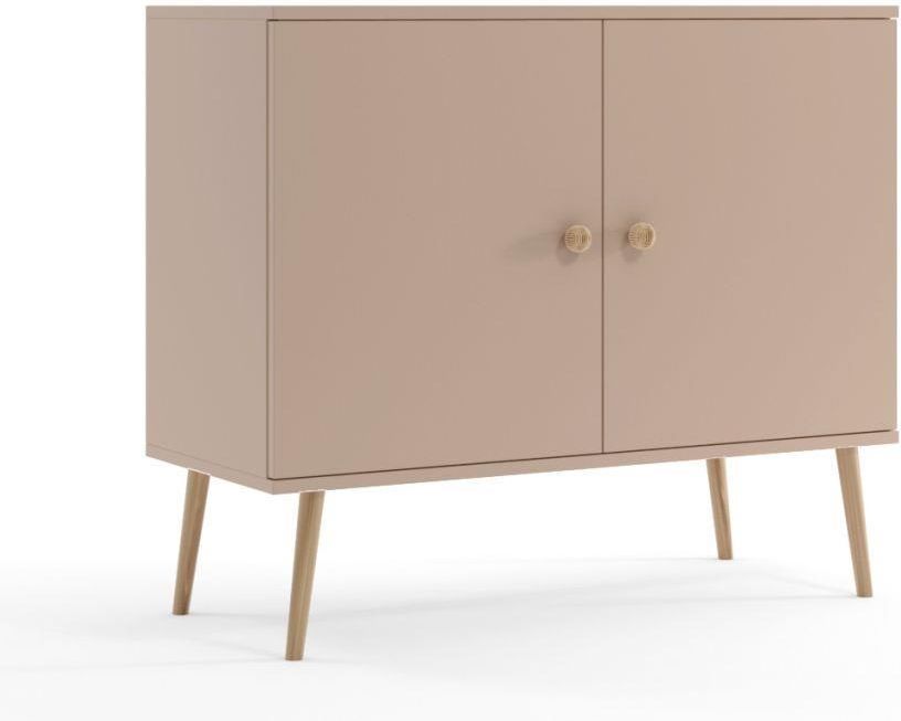 Komoda LEBEL w kolorze macchiato na drewnianych nogach to propozycja do salonu w stylu skandynawskim.