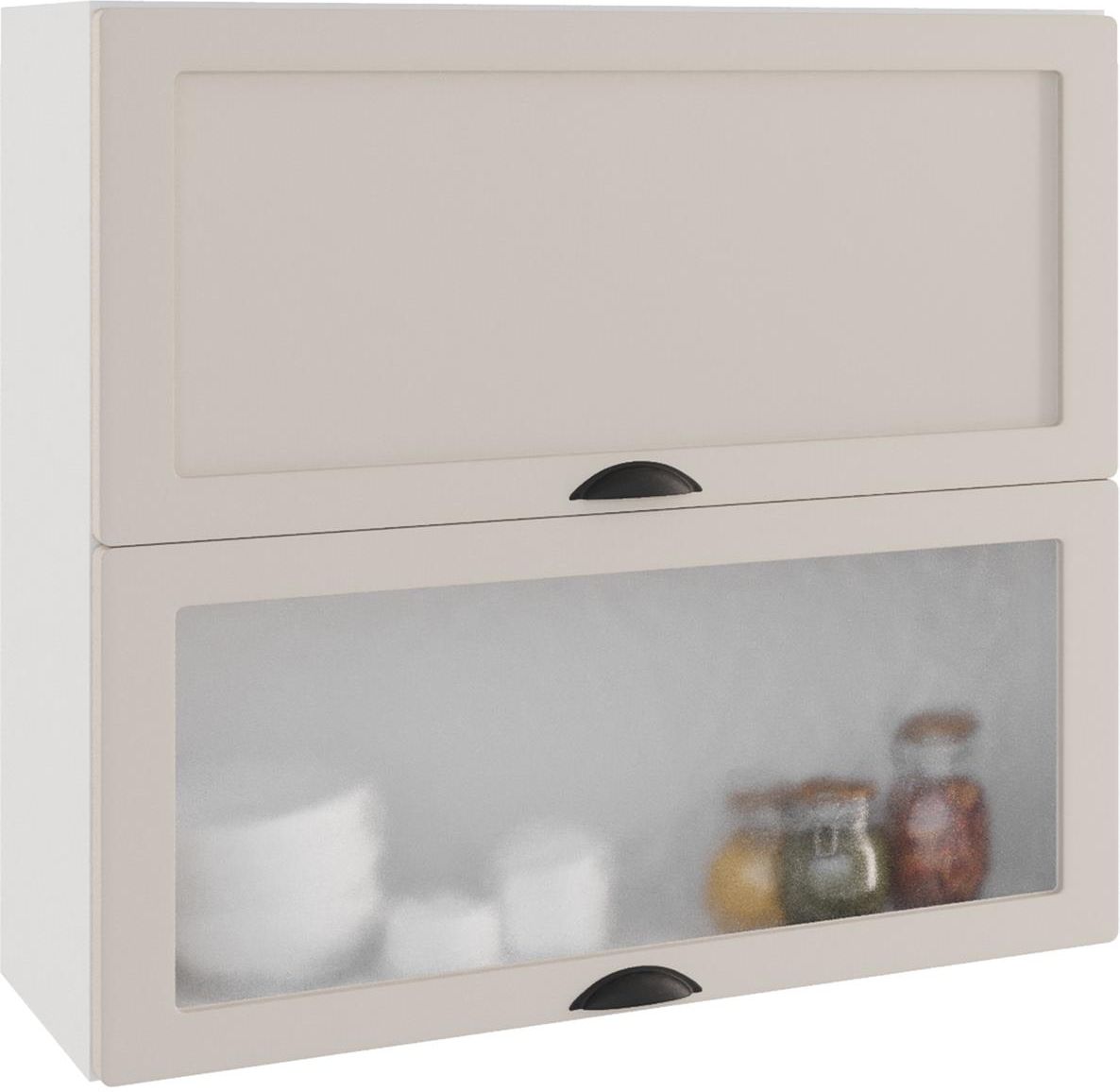 Klasyczna szafka kuchenna ADELE W60 GRF/2 SD dwudrzwiowa z przeszkleniem Szafka kuchenna wisząca 60 ADELE W60 GRF/2 SD to funkcjonalna szafka kuchenna o szerokości 60 cm i wysokości 72 cm. Korpus szafki wykonany jest z płyty laminowanej w kolorze biały mat, front natomiast to płyta MDF foliowana w kolorze beżowy z przeszkleniem w dolnej części szafki. Oba fronty szafki unoszone są ku górze dzięki zastosowaniu siłowników gazowych. Do szafki można dokupić czarne uchwyty (widoczne na zdjęciu poglądowym) wybrać inne z proponowanych do szafki uchwytów lub można zdecydować się na nowoczesne otwieranie systemem Push-To-Open. Klasyczna szafka kuchenna 60 ADELE W60 GRF/2 SD jest odporna na wilgoć, zarysowania i inne uszkodzenia mechaniczne. Szafka wraz z pozostałymi meblami z kolekcji pozwoli stworzyć zestaw mebli kuchennych na miarę własnych oczekiwań. Do szafki możemy dokupić uchwyty (zdjęcie powiększone), wybrać inne z listy wpisując ich nazwę w wyznaczonym polu lub postawić na nowoczesne rozwiązania i zastosować system PUSH-TO-OPEN. Wybierając inny model uchwytów, należy wziąć pod uwagę różnice cenowe pomiędzy każdym z modeli. Zaznaczając tę opcję (uchwyt z listy wyboru), cena wybranych uchwytów zostanie doliczona do Państwa zamówienia. Cechy produktu wisząca szafka kuchenna górna, korpus z płyty laminowanej 16 mm w kolorze białym, front z płyty MDF foliowanej 19 mm w kolorze beżowy, dolny front z przeszkleniem, siłowniki gazowe, cichy domyk, możliwość zakupu uchwytów lub systemu Push-To-Open, nie wykonujemy projektów kuchni, do samodzielnego montażu, podstawowy zestaw montażowy w komplecie, bezproblemowy zwrot aż do 30 dni, w swojej ofercie posiadamy szeroki wybór mebli pozwalających na kompleksowe wyposażenie mieszkania.