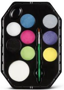 Farby do twarzy dla dzieci Zestaw zawiera Farbki o pojemności 2 ml : biały, srebrny, niebieski z połyskiem, różowy, czarny, fioletowy z połyskiem, pastelowy zielony i pastelowy żółty. Zestaw zawiera także akcesoria - gąbkę i pędzelek do nakładania farb, a także instrukcję w postaci książeczki z wzorami do malowania twarzy. Zawartość tego zestawu powinna wystarczyć do pomalowania 50 twarzy. Farby Snazaroo są produkowane ręcznie w Anglii. Są bezpieczne i łatwe w użyciu. Produkowane na bazie wody i barwników najwyższej jakości, są łatwe w nakładaniu (zwilżoną gąbką) i zmywaniu (wodą z mydłem). Farby Snazaroo do twarzy i ciała są nietoksyczne, bezpieczne i nie powodują podrażnień. Przebadane dermatologicznie. Spełniają wymogi antyalergiczne Unii Europejskiej i USA. Produkt idealny dla dzieci, osób o wrażliwej cerze a także do charakteryzacji osób aktywnych niezależnie od wieku: animatorów zabawy i czasu wolnego, klaunów, mimów, kibiców itp. Farby do malowania twarzy i ciała Snazaroo nadają się do użycia nawet do 18 miesięcy po otwarciu opakowania.