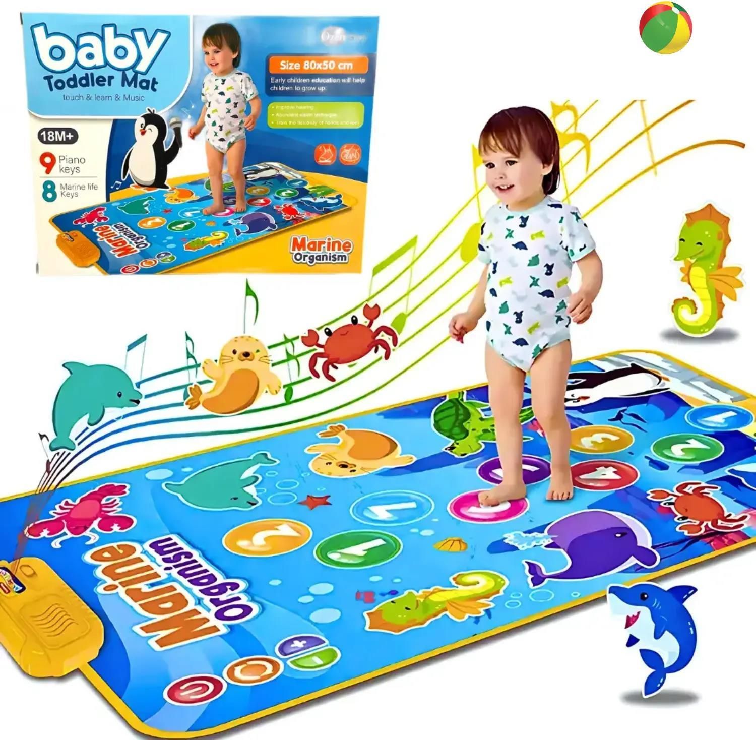 Mata muzyczna z dźwiękami zwierząt z oceanu od Kocham Zabawki Odkryj razem ze swoim dzieckiem niezwykły świat podwodnych przygód dzięki muzycznej macie dźwiękowej "Ocean". Ta barwna mata o wymiarach 50x80 cm to idealny sposób na połączenie zabawy z nauką! Znajdziesz na niej sympatyczne morskie zwierzątka, takie jak delfiny, rybki, kraby i inne mieszkańcy oceanu, które ożywają, gdy tylko Twoje dziecko na nie nadepnie. Mata jest zasilana bateriami, dzięki czemu emituje przyjemne dźwięki i melodie, które stymulują wyobraźnię Twojego malucha. Wykonana z miękkiego, przyjaznego dla skóry materiału, zapewnia komfort podczas zabawy. Intensywne kolory oraz realistyczne dźwięki nie tylko bawią, ale również wspierają rozwój sensoryczny i koordynację ruchową dziecka. Mata "Ocean" to idealny wybór dla dzieci w każdym wieku, wprowadzając je w fascynujący świat podwodnych przygód. Spraw swojemu dziecku radość z odkrywania oceanu podczas zabawy i nauki na tej wyjątkowej macie! Ta wyjątkowa mata o wymiarach 50x80 cm stanowi doskonałe połączenie zabawy i edukacji, zachęcając maluchy do odkrywania morskich głębin pełnych fascynujących stworzeń. Na macie znajdziesz pięknie wykonane ilustracje sympatycznych zwierząt morskich, takich jak delfiny, rybki, kraby, żółwie i wiele innych, które ożywają dzięki interaktywnej funkcji dźwiękowej. Każde naciśnięcie na obrazek aktywuje różnorodne dźwięki – od odgłosów morskich fal po melodie nawiązujące do życia w oceanie. To nie tylko dostarcza radości, ale również wspiera rozwój zmysłu słuchu i uczy dziecko rozróżniania dźwięków. Dodatkowo, realistyczne odgłosy zwierząt pomagają maluchom poznać i zrozumieć przyrodę, rozwijając ich ciekawość świata. Mata "Ocean" jest zasilana bateriami, co pozwala na wielogodzinną zabawę bez przerwy. Wykonana z miękkiego, hipoalergicznego materiału, jest bezpieczna i komfortowa dla małych odkrywców. Jej intensywne kolory i staranne detale przyciągną uwagę każdego dziecka, sprawiając, że zabawa stanie się jeszcze bardziej angażująca. To idealny produkt dla dzieci w każdym wieku, który wprowadza je w fascynujący świat podwodnych przygód, jednocześnie wspierając ich rozwój sensoryczny i koordynację ruchową. Z matą dźwiękową "Ocean" każde dziecko poczuje się jak mały odkrywca w krainie morskich cudów!