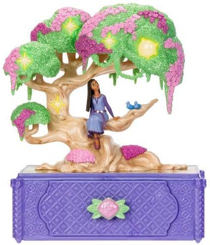 Specjalne życzenia zasługują na specjalne miejsce, więc umieść swoje w pudełku Asha's Wishing Tree Keepsake Box. Wypowiedz życzenie i zapisz je na papierze życzeń, a następnie umieść je w specjalnej kapsule. Umieść swoje życzenie w szufladzie i obserwuj, jak magia nowego filmu animowanego Disneya Wish ożywa, gdy gwiazdy na drzewie życzeń magicznie się rozświetlają, a Asha gra piosenkę "This Wish". W zestawie znajduje się pamiątkowy pierścionek z gwiazdą, który można bezpiecznie przechowywać w szufladzie z życzeniami, gdy go nie nosisz.