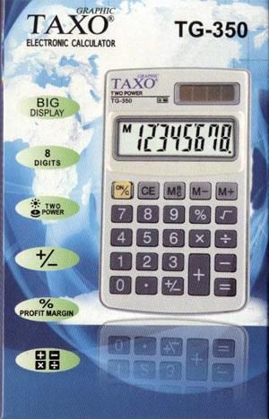 KALKULATOR TAXO TG-350 219164 Producent: TITANUM Kod paskowy (EAN): 5907437641323 kalkulator kieszonkowy 8-pozycyjny, duży wyświetlacz plastikowa obudowa z metalowym frontem w kolorze srebrnym gumowe klawisze podwójny system zasilania: baterie lub energia słoneczna operacje z wykorzystaniem pamięci …
