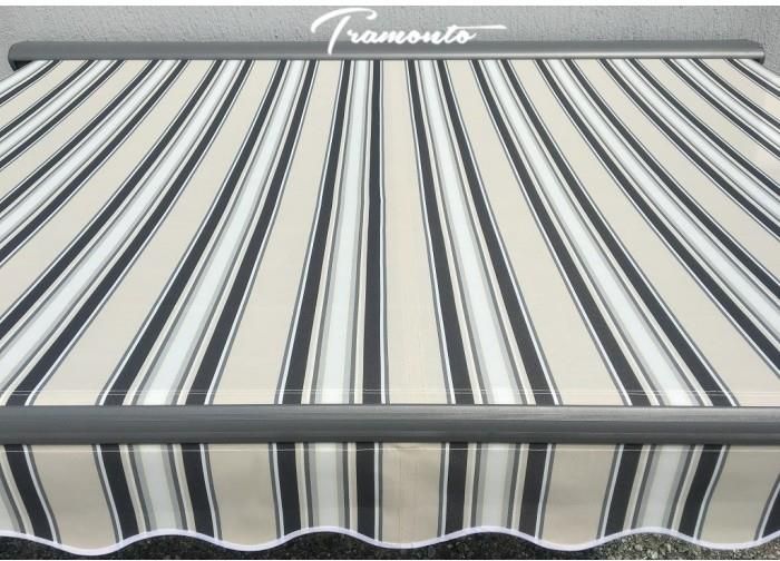 W odpowiedzi na Państwa zapytania, z powodzeniem zastosowaliśmy kolor szary (antracyt) , zarówno w przypadku konstrukcji, jak i wszystkich akcesoriów: - uchwyty mocujące, korba, listwa ozdobna przednia i inne - dzięki czemu nie tylko materiał ale integralna całość stanowi harmonijne połączenie walorów zarówno estetycznych jak i praktycznych. Oferujemy Państwu wyjątkowo eleganckie modele markiz, które idealnie wpisują się w najnowsze trendy aranżacji: * tarasów * balkonów * elewacji budynków Antracytowa konstrukcja oraz elementy wykończeniowe i akcesoria, nadają markizie nowoczesny i wyszukany charakter. SZCZEGÓŁOWA SPECYFIKACJA TECHNICZNA: - Bezprzewodowe sterowanie elektryczne za pomocą pilota - Tkanina nieprzemakalna, impregnowana, zabezpieczona przed UV - Gramatura materiału: 280g/m2 - Specjalnie wzmocniona konstrukcja aluminiowa w kolorze ANTRACYT, malowana proszkowo, lakierowana - Grubość ścianki konstrukcji: 1,2 mm - Wysięg regulowany - Z przodu aluminiowy panel ozdobny poprawiający estetykę produktu - Głowica awaryjnego sterowania przy pomocy korby - Regulowany kąt nachylenia w zakresie 0 - 45 stopni ZESTAW ZAWIERA: - markiza z silnikiem - korba wysuwająca/zwijająca - uchwyty do montażu naściennego - instrukcja w języku polskim - pilot