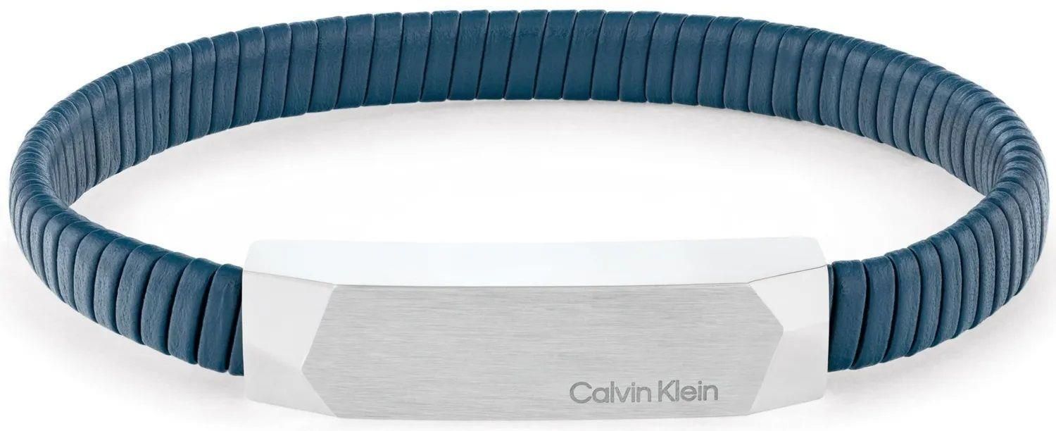 Calvin Klein Bransoletka męska skórzana niebieska z elementem stalowym z logo CK 35100013 Janikowo