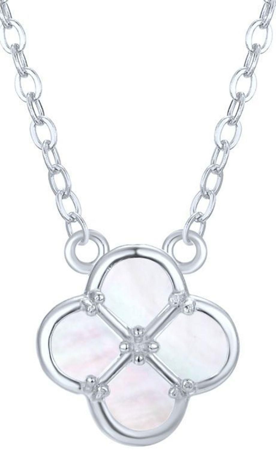 Diament MINET srebrny naszyjnik koniczyna z białą masą perłową Ag 925 – 50 cm Janikowo