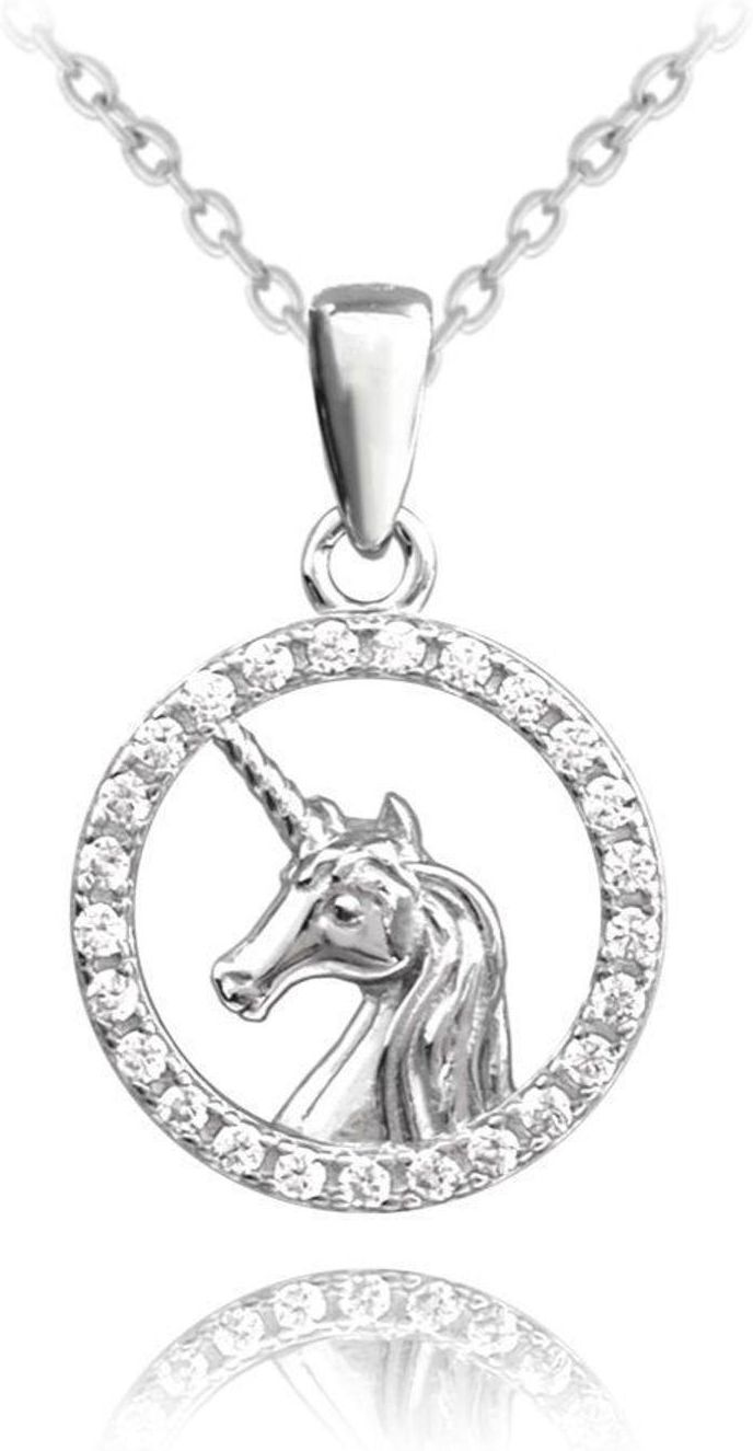 Naszyjnik dla dziewczynki z zawieszką w kształcie koła z cyrkoniami oraz jednorożcem. Naszyjnik został wykonany z najwyższej jakości srebra próby 925. Uroczy naszyjnik z jednorożcem. Idealnie sprawdzi się jako prezent dla osoby kochającej zwierzęta, które jak widać są też wdzięcznym motywem …
