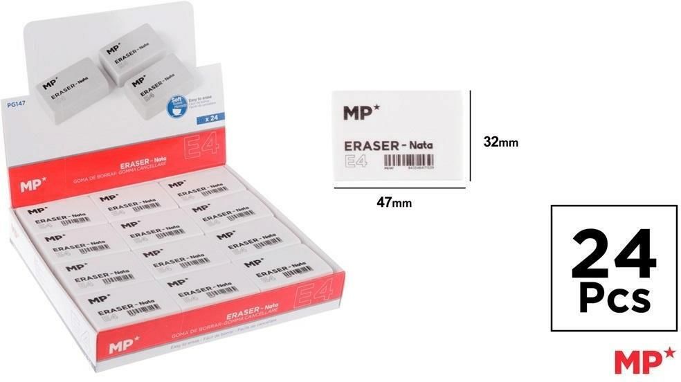 Biała plastikowa gumka. Na ołówek, łatwa do ścierania. Zapach kremu. Kształt bloku. Wymiary gumy:47 x 32 mm.