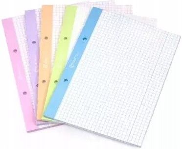 50 kartkowy wkład w kratkę z barwionym grzbietem. Posiada boczną perforację. Idealny do tworzenia wszelkich notatek, zapisków.Uwaga. Dostępne różne wersje kolorystyczne produktu – wysyłka losowa. Cena dotyczy 1 zestawu (50 kartek).