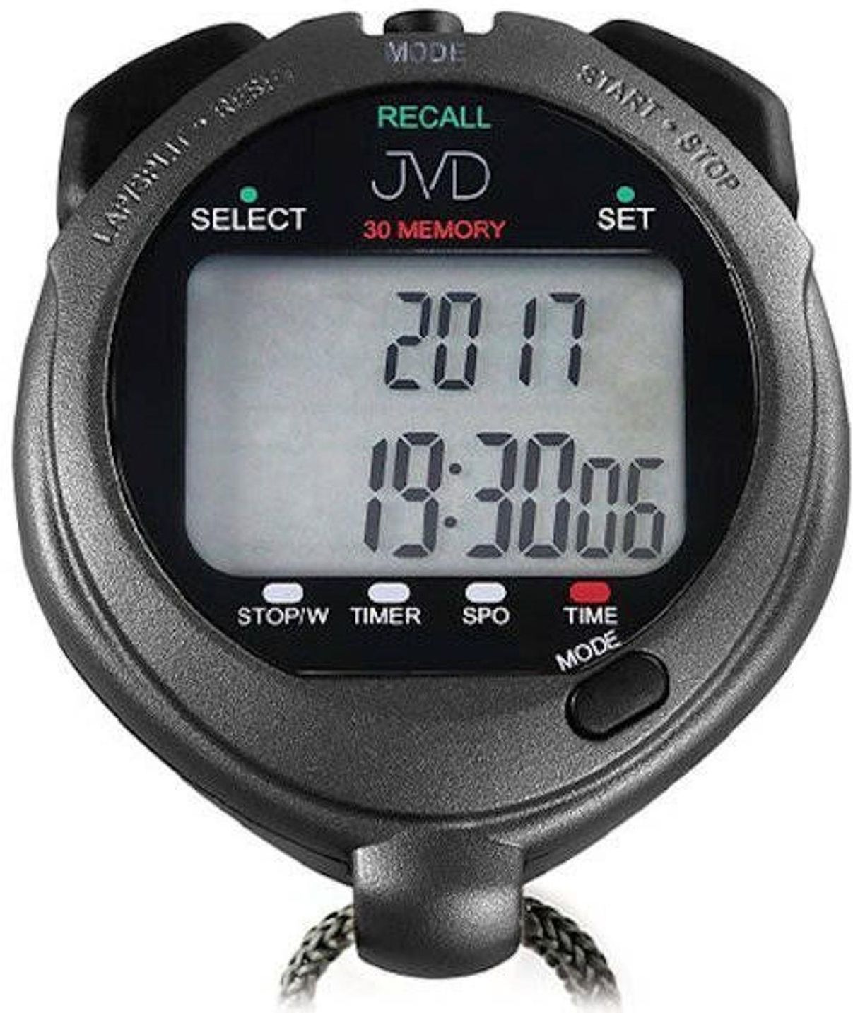 MECHANIZM: Stoper JVD ST81 wyposażony jest w kwarcowy mechanizm, zasilany za pomocą baterii. Stoper JVD ST2230. Dokładność 1/100 s. Zakres pomiaru do 10 godzin. Pamięć 30 okrążeń / międzyczasów. Timer. Zegar, alarm, kalendarz, termometr. Obudowa z tworzywa sztucznego SZKIEŁKO akrylowe płaskie …