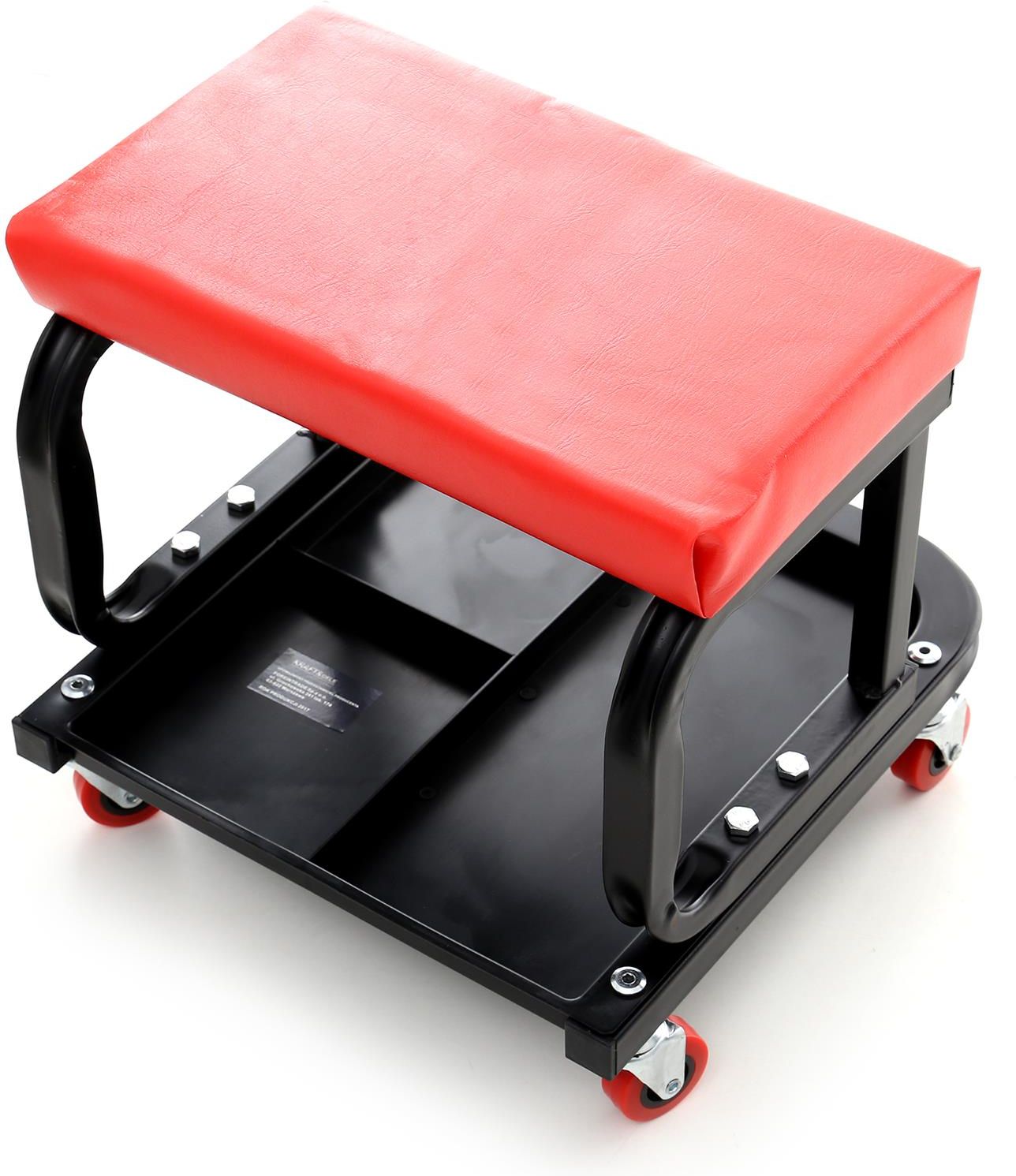STOŁEK KRZESŁO WARSZTATOWE KÓŁKA KD375 Stołek krzesło warsztatowe kółka KD375 marki Kraft&Dele Bardzo dobrze wykonane siedzisko warsztatowe polskiej marki Kraft&Dele model KD375. Niezwykle wytrzymałe krzesełko oparte na aluminiowym szkielecie. Wygodne siedzisko pokryte przyjemnym, trwałym i łatwym w konserwacji materiałem. Zapewnia wygodę nawet przy dłuższej pracy z siedziskiem. Dla poprawy komfortu użytkowania krzesełko wyposażone jest w półkę na narzędzia, klucze, śruby, których używamy przy pracy. Nie martw się narzędziami leżącymi na ziemii! Całość opiera się na czterech solidnych, obrotowych kółkach, pozwalających na przemieszczanie się w garażu. PARAMETRY TECHNICZNE PRODUKTU Marka: Kraft&Dele Model: KD375 Typ: siedzisko warsztatowe Wykonanie stelażu: aluminiowe Wymiary poduszki: 370 x 215 mm Wysokość stołka: 365 mm Maksymalne obciążenie: 136 kg Średnica kółek: 50 mm Siedzisko: miękkie, skóropodobne Waga: 4,2 kg SKŁAD ZESTAWU Siedzisko warsztatowe Kraft&Dele KD375