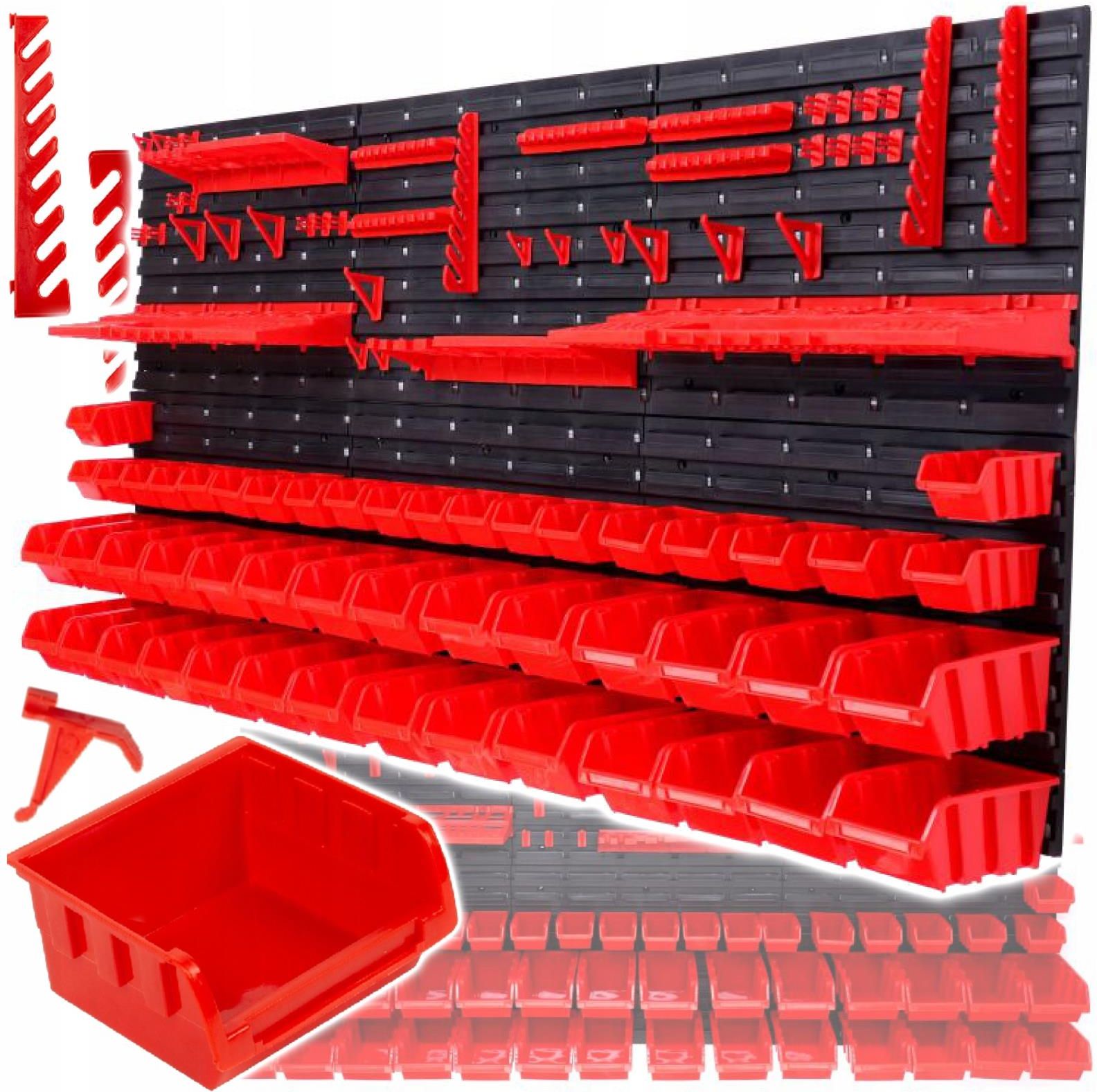 TABLICA WARSZTATOWA ŚCIANKA ORGANIZER WARSZTATOWY 170X78 CM POJEMNIKI Model: KD11861 Producent: KRAFT&DELE Tablica / ścianka warsztatowa to niezawodny sposób aby utrzymać porządek na miejscu pracy. Tablica pozwala zachować przejrzystość i ład w narzędziach. Tablice możemy wykorzystać w warsztacie, magazynie, garażu itp. Świetnie sprawdza się także jako witryna sklepowa. Idealne rozwiązanie dla osób ceniących funkcjonalność i porządek w swoim miejscu pracy! UWAGA!!! ZESTAW BEZ NARZĘDZI! DANE TECHNICZE Długość: 170 cm Szerokość: 78 cm Waga: 8,6 kg Materiał: Wysokiej jakości plastik Ilość elementów w zestawie: 74 el. Kolor pojemników, uchwytów i wieszaków: Czerwony Kolor tablic: Czarny RENOMOWANY PRODUCENT, ERGONOMICZNY DESIGN, NOWOCZESNE ROZWIĄZANIA - TO CECHY WYRÓŻNIAJĄCE PREZENTOWANY PRODUKT NA TLE KONKURENCJI JEDEN PRODUKT, WIELE ZALET Umożliwia przechowywanie narzędzi, śrubek, gwoździ i akcesoriów w uporządkowany sposób, ułatwiając utrzymanie porządku w miejscu pracy. Możliwość dowolnego rozmieszczenia pojemników i haczyków zgodnie z indywidualnymi potrzebami. Duża powierzchnia 170x78 cm zapewnia dużo miejsca na narzędzia i akcesoria. Wykonana została z wysokiej jakości plastiku odpornego na uszkodzenia mechaniczne, cały zestaw jest bardzo stabilny. Montaż tablicy jest bardzo szybki i łatwy wystarczy w otwory montażowe zamontować śruby. SZEROKIE ZASTOSOWANIE ✔️Warsztat samochodowy – przechowywanie kluczy, śrubokrętów, szczypiec i drobnych elementów. ✔️Garaż domowy – organizacja śrub, gwoździ, nakrętek i podstawowych narzędzi. ✔️Pracownia majsterkowicza – idealne miejsce na młotki, wkrętaki, poziomice czy wiertła. ✔️Hobby i modelarstwo – wygodne przechowywanie małych elementów, farb i narzędzi precyzyjnych. ✔️Magazyn i serwis – sprawna organizacja akcesoriów i części zamiennych w miejscu pracy. ZESTAW ZAWIERA ✔️22 x pojemniki 80 x 115 x60 mm ✔️28 x pojemników 120 x 195 x 90 mm ✔️2 x zestaw uchwytów na klucze ✔️8 x chwytaków na śrubokręty ✔️4 x wieszaki 5,5 cm ✔️4 x wieszaki 3,5 cm ✔️Półka narzędziowa 190 x 111 x 32 mm ✔️Półka narzędziowa 180 x 111 x 32 mm ✔️2 x Półka narzędziowa 384 x 111 x 50 ✔️2 x Półka narzędziowa 580 x 158 x 67 mm