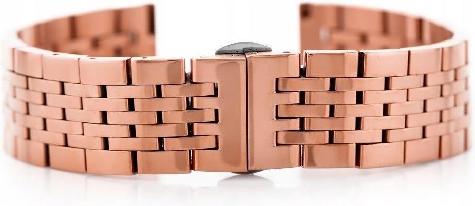 Bransoleta Pacific Model 4 - różowozłota 18mm WYMIARY szerokość przy mocowaniu: 18mm szerokość bransolety: 18/16mm długość całkowita po rozłożeniu: 185mm maksymalny obwód: ok. 17 cm (do obwodu należy doliczyć rozmiary koperty docelowego zegarka) OPIS Stalowa bransoletka z zapięciem motylkowym do zegarka wysokiej jakości w kolorze różowego złota. Możliwość skrócenia bransolety poprzez usunięcie ogniw - można usunąć maksymalnie 6, szerokość jednego ogniwa to ok. 8mm.