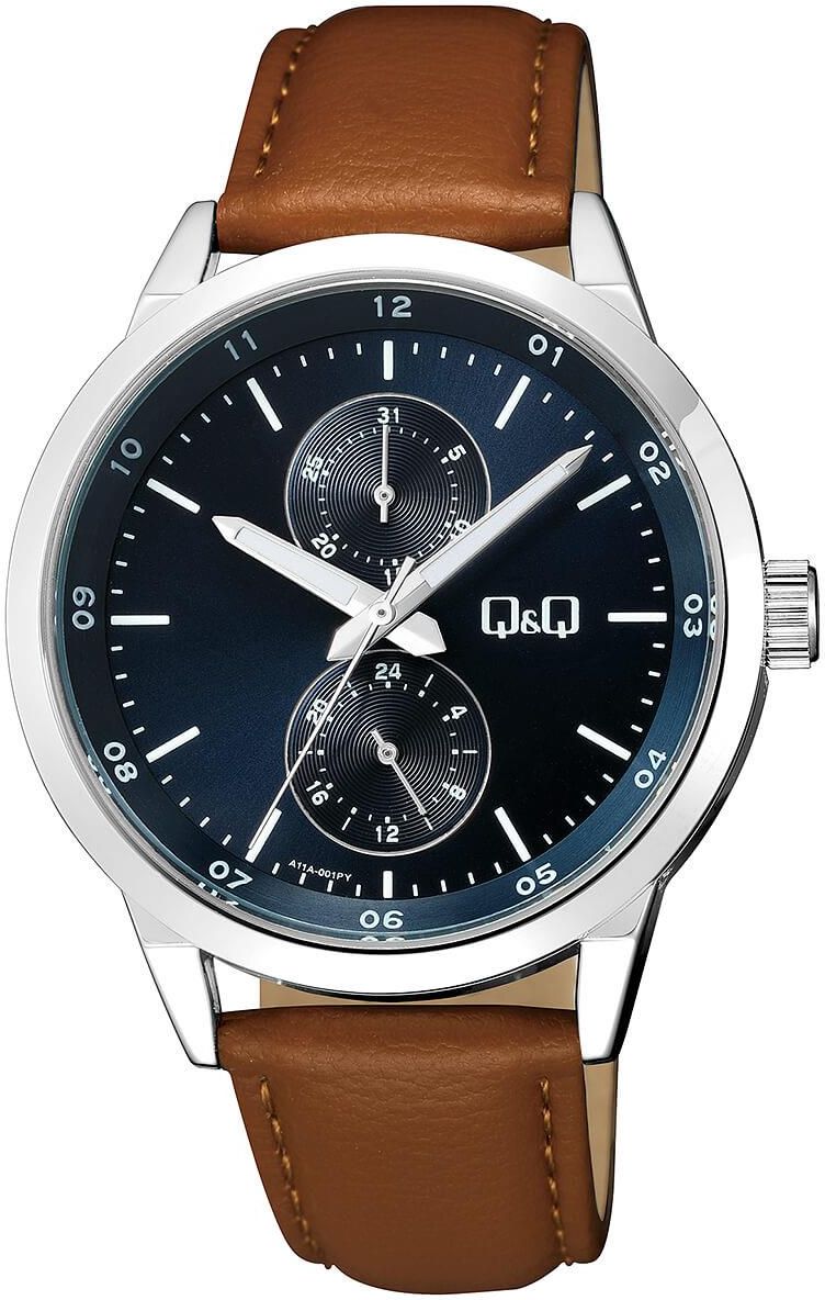 Mechanizm zegarka: Zegarek męski QQ elegancki na brązowym pasku A11A-001Pwyposażony jest w kwarcowy mechanizm, zasilany za pomocą baterii. Posiada bardzo wysoką dokładność mierzenia czasu +/- 10 sekund w przeciągu 30 dni. Koperta zegarka: Mechanizm japoński mieści się w okrągłej, wytrzymałej kopercie. Koperta wykonana z ALLOY’u, czyli bardzo popularnego stopu metali na bazie mosiądzu. Charakteryzuje się stosunkowo niewielka wagą, a jednocześnie dużą wytrzymałością. Koperta nie zawiera niklu i innych pierwiastków szkodliwych dla zdrowia. Wykorzystanie wysokiej jakości stali w deklu (dolna część zegarka) gwarantuje, że czasomierz odporny jest na korozję i uszkodzenia oraz nie powoduje alergii. Stop stali szlachetnej charakteryzuje się optymalna odpornością na korozje. W zegarkach Q&Q wykorzystany jest jeden z najlepszych stopów stali 316 L. Koperta zegarka w srebrnym kolorze. Szkło zegarka: Zegarek wyposażony w szkło mineralne ( 5 stopień w skali Mohsa) - najczęściej spotykane, bardzo przejrzyste, czyste, cienkie, elastyczne i odporne na pęknięcia. Tarcza zegarka: Tarcza zegarka okrągła, w niebieskim kolorze z białymi indeksami idealnie pasuje do całości zegarka. Wskazówki zegarka pokryte są warstwą luminescencyjną. Pasek zegarka: W zegarku zamontowano pasek z delikatnej skórki w kolorze brązowym. Zapięcie zegarka: Tradycyjna sprzączka w srebrnym kolorze. Wodoszczelność zegarka: Zegarek z wodoszczelnością 50m (5 ATM), gwarantuje właścicielowi, że nie musi bać się zachlapań, czyli np. mycia rąk. Oprócz tego w zegarku można się kąpać, pływać na basenie itp. Datownik: Wskazanie dnia miesiąca na górnej subtarczy. Zegarek męski japońskiej marki Q&Q na rękę może przyjąć różny wygląd i styl. Niezwykle dużą popularnością cieszą się egzemplarze od tej wieloletniej firmy z tradycją. Marka ta zyskał uznanie na polskim rynku dzięki oryginalnym i ponadczasowym wzorom stosowanym w swoich produktach. Uniwersalne zegarki męskie czarne i białe o doskonałym wykonaniu skradają serca wielu Panów w różnym wieku. Bez najmniejszego problemu znajdziemy tutaj modowe zegarki na bransolecie męskie, czy proste na tradycyjnym skórzanym pasku. Marka japońskich zegarków Q&Q pojawiła się na rynku po raz pierwszy w roku 1976. Od pewnego czasu, marka Q&Q rozwija się prężnie w dziedzinie zegarków elektronicznych, i analogowych zegarków kwarcowych. Sama nazwa – Q&Q – pochodzi od angielskiego Quality & Quantity (Jakość i Ilość), co oznacza produkcję z zachowaniem wysokich standardów jakości. Każdy znajdzie dla siebie odpowiedni zegarek ,szeroki asortyment marki, bogate wzornictwo i nowoczesne technologie zadowolą każdego użytkownika. Nasz sklep internetowy z zegarkami Q&Q jest autoryzowanym dystrybutorem marki. Wszystkie damskie i męskie zegarki Q&Q zakupione w naszym sklepie posiadają 3 letnią gwarancję i zapakowane są w oryginalne opakowanie producenta. Jest to eleganckie pudełko do zegarka z logiem japońskiej marki Q&Q.