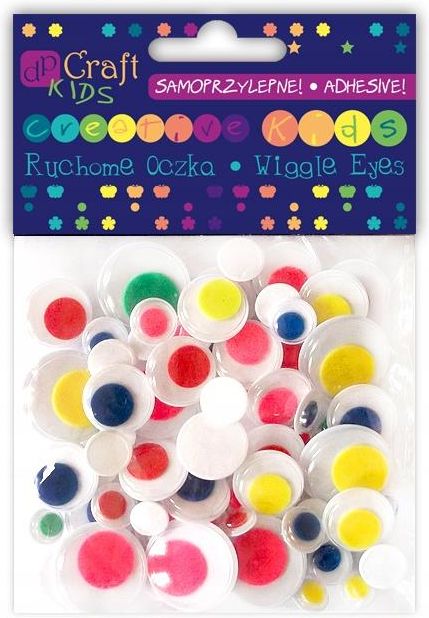Samoprzylepne ruchome oczka mix - kolorowe, 75 szt. Samoprzylepne ruchome oczka znakomicie nadają się do wszelkiego rodzaju dziecięcej aktywności twórczej. Można nimi ozdobić własnoręcznie wykonaną lalkę, zwierzątko lub inną postać. Doskonale sprawdzają się w cardmakingu, scrapbookingu oraz wielu …