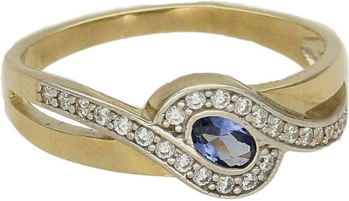 Złoty pierścionek 333 płaski z tanzanitem i cyrkoniami Janikowo