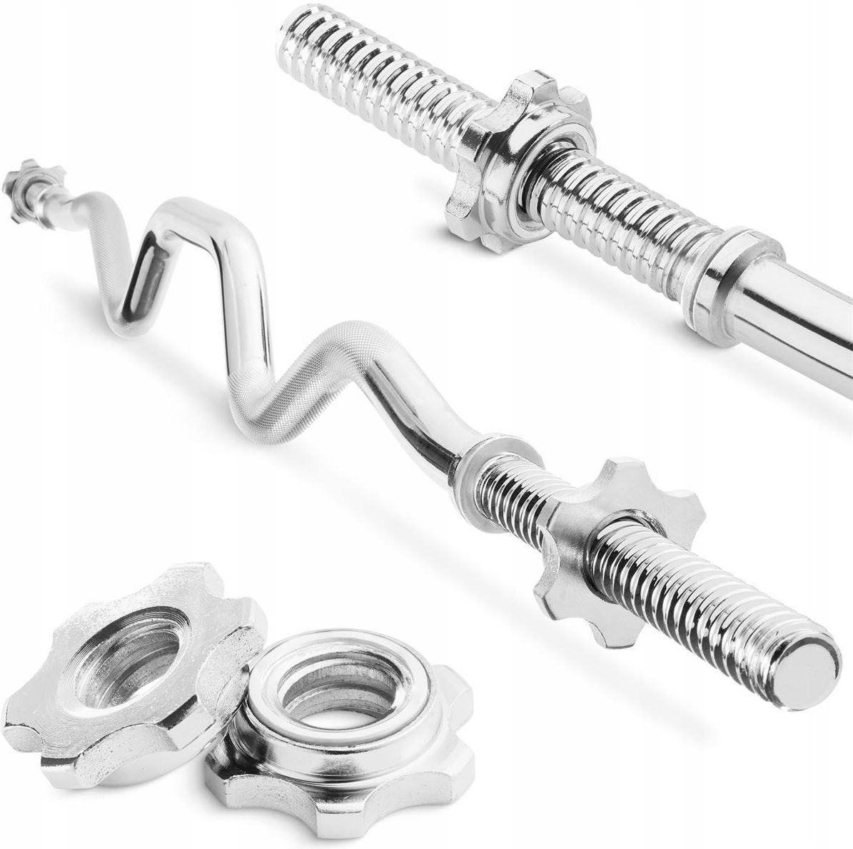GRYF MOCNO ŁAMANY STALOWY CHROMOWANY GWINTOWANY PEŁNY SZTANGA ZACISKI 120 CM Gryf mocno łamany do ćwiczeń ze sztangą 120 cm 4FIZJO z gwintowanymi zaciskami Trenuj dla przyjemności i kiedy masz ochotę. Z naszym gwintowanym gryfem mocno łamanym do ćwiczeń 120 cm 4FIZJO nie tylko zrzucisz zbędne kilogramy, ale również wzmocnisz i wymodelujesz ramiona i barki. Z tym sprawdzonym sprzętem fitness efektywnie zwiększysz masę mięśniową górnej partii ciała. Ćwiczenia za pomocą gryfu łamanego są jednymi z bardziej skutecznych. Sprawdzą się zarówno przy siłowym, jak i wytrzymałościowym treningu. Wprowadź aktywność sportową do swojego planu dnia i zacznij ćwiczyć już dziś! Gryf mocno łamany do ćwiczeń 120 cm 4FIZJO Popraw swoją kondycję i zwiększ siłę dzięki wydajnemu treningowi z gryfem mocno łamanym. W łatwy sposób dopasuj odpowiedni sprzęt sportowy do swoich potrzeb i umiejętności. Zapoznaj się z poniższymi cechami gryfu do domowej siłowni 120 cm 4FIZJO! Parametry Rodzaj gryfu: mocno łamany Rodzaj zacisków: gwintowane Materiał: stal chromowana Kolor: srebrny Długość gryfu: 120 cm Średnica gryfu: 25 mm Długość części chwytnej: 82 cm Długość części na obciążenia: 19 cm x 2 Waga: 5,2 kg Ćwiczenia z gryfem do sztangi 4FIZJO – jak odpowiednio trenować? Gryf do treningu siłowego 4FIZJO dla osób początkujących jest odpowiedni do codziennych ćwiczeń na siłowni i w domu. Trening z takim sprzętem fitness jest nie tylko wymagający i intensywny, ale też gwarantuje widoczne efekty. Co więcej, znacznie mniej obciąża nadgarstki. Dobierz odpowiedni rodzaj gryfu do wykonywanych ćwiczeń i poziomu zaawansowania. Gryf o wymiarach 120 × 2,5 cm wykorzystasz do: Intensywnego treningu klatki piersiowej i ramion Ćwiczeń na barki, bicepsy i tricepsy (np. podrzuty i zarzuty) Uginania przedramion podchwytem i nachwytem Unoszenia ramion przed siebie, podciągania pod brodę i wiosłowania Wyciskania wąskiego na ławce płaskiej 3 w 1, czyli wytrzymała konstrukcja, bezpieczeństwo i komfort treningu Trenuj na miarę swoich możliwości z gryfem mocno łamanym o długości 120 cm 4FIZJO. Produkt ten został w całości wykonany z wysokogatunkowej stali chromowanej. To sprawia, że cała konstrukcja jest wytrzymała. Tym samym zapewnia on duży udźwig obciążenia bez obaw o powstawanie odkształceń. Komfort treningu zapewniają ryflowane części chwytne. To specjalne antypoślizgowe żłobienie gwarantuje pewny chwyt i zapobiega ślizganiu się rąk. Stabilność obciążenia, a co za tym bezpieczeństwo to priorytety podczas ćwiczeń siłowych. Dlatego też zaletą są gwintowane zakończenia, na których mocuje się talerze. Dzięki temu nie zsuwają się i nie kołyszą w trakcie intensywnych ćwiczeń. Pożądany efekt zapewniają dołączone do gryfu dodatkowe 2 zaciski z gumowymi uszczelkami.
