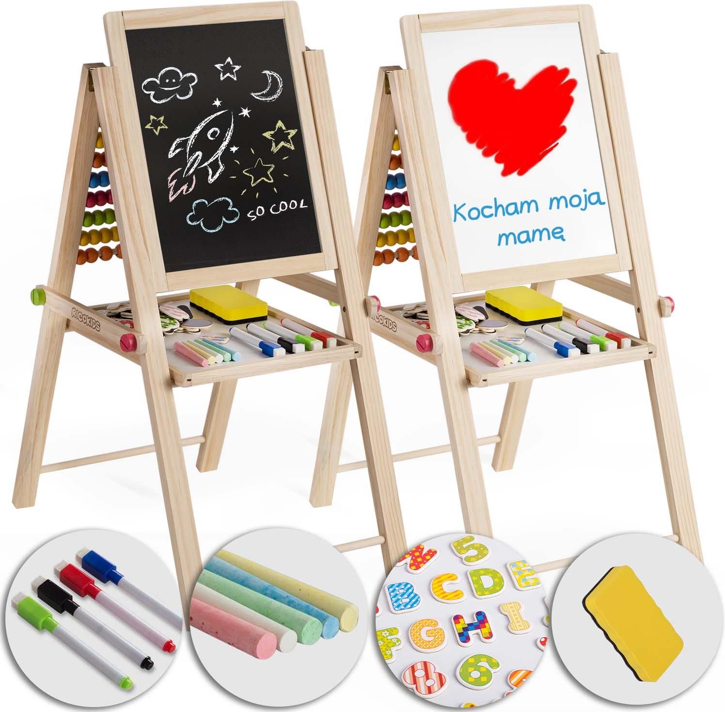 TABLICA DLA DZIECI MEGNETYCZNA KREDOWA RYSOWANIA PISANIA LICZYDŁO MAGNESY ŚWIETNY POMYSŁ NA PREZENT DLA DZIECKA! ⭐⭐⭐ ✅ NA MIKOŁAJA ✅ POD CHOINKĘ ✅ GŁÓWNE CECHY: zawiera wszystkie potrzebne akcesoria, alfabet i liczydło, dwie tablice w jednej - kredowa i magnetyczna - obrotowa, wyciągana tablica- …