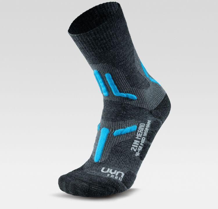 Uyn Trekking 2IN Merino Mid Socks Damskie Skarpety trekkingowe Kod produktu: S100238J689 Rozmiar EU : 35 - 36 SKŁAD 47% Poliamid 32% Wełna Merino 14% Polypropylen 2% Elasten Na wędrówki w niskich temperaturach firma UYN opracowała skarpetki 2IN MERINO o wysokich właściwościach izolacyjnych: warstwa zewnętrzna wykonana jest z ekskluzywnej kombinacji delikatnej wełny Merino i włókna Fibresist. Rezultatem jest miękka, termoregulująca, a jednocześnie odporna tkanina. Wewnętrzna warstwa wykonana jest z zaawansowanego technologicznie włókna Texlyte Nano, lekkiego i zdolnego do odprowadzania wilgoci na zewnątrz, oraz bio-włókna Natex. Specjalny system Two Layers skutecznie zmniejsza ryzyko powstawania pęcherzy podczas pieszych wędrówek, trójwymiarowe struktury zapewniają amortyzację w strategicznych miejscach. Zastosowane materiały Wełna MERINO Ciepła, miękka i oddychająca wełna merino jest ceniona na całym świecie ze względu na swoje właściwości: bardzo cienkie włókna są miękkie dla skóry, regulują temperaturę, umożliwiają oddychanie i zapobiegają powstawaniu nieprzyjemnych zapachów. UYN dodatkowo optymalizuje te niezwykłe właściwości dzięki specjalnej technologii produkcji, która łączy wełnę i pędy FIBRESIST, dzięki czemu jest jeszcze bardziej odporna i szybciej wchłania pot. Zastosowane technologie Ergologic Footbed - Anatomicznie ukształtowana wkładka dostosowana do wysiłku sportowego i ruchu. Preshock - Amortyzuje wstrząsy i chroni wrażliwe ścięgno Achillesa dzięki trójwymiarowej dzianinie. Cool Air Flow - Struktura mikrokanałowa 3D zapewniająca cyrkulację powietrza; utrzymuje stopy w suchości i przyjemnej temperaturze. Anti Impactor - Przednia, amortyzująca, dzianinowa struktura 3D, która jednocześnie gwarantuje skuteczną wentylację stopy. UYN (Unleash Your Nature) jest innowacyjną marką włoskiego producenta funkcyjnej odzieży dzianej Trerè. Od dziesięcioleci Trerè produkuje najwyższej jakości dzianiny z delikatnych przędz, które są bardzo przyjemne dla ciała, wspierają je oraz zapewniają zrównoważony komfort termiczny. Obojętnie, czy to bielizna, koszulki, skarpety, czy też akcesoria, UYN gwarantuje dobre samopoczucie podczas uprawiania sportu.