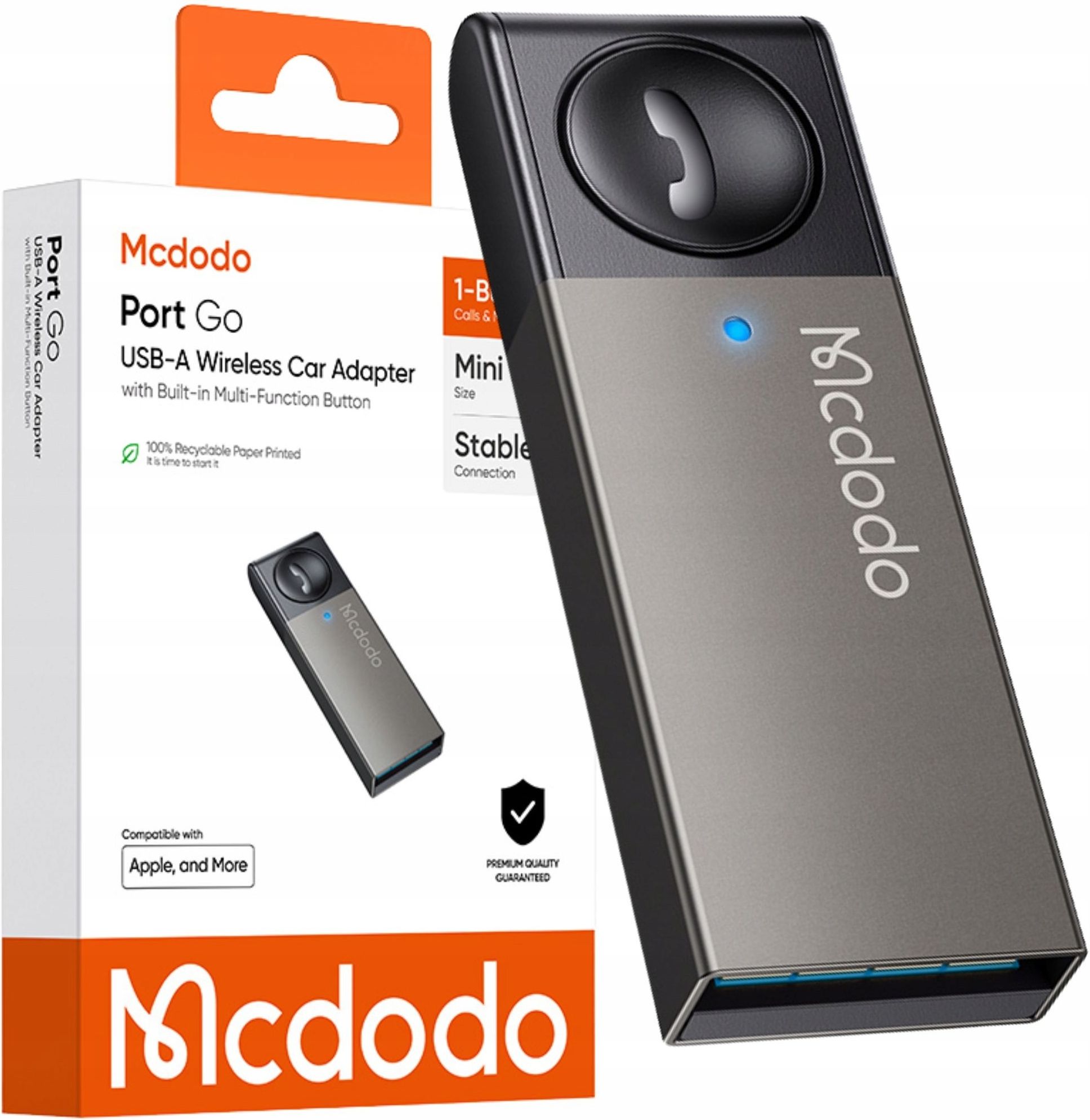 Mcdodo Port Go Odbiornik Bluetooth do USB-A Adapter Mcdodo Port Go to idealne rozwiązanie dla każdego kierowcy. Dzięki łatwej instalacji i technologii Bluetooth 5.0, możesz bez problemu słuchać muzyki, odbierać połączenia i korzystać z Android Auto oraz CarPlay, bez odrywania wzroku od drogi. Wystarczy jedno kliknięcie, by cieszyć się komfortem jazdy i pełną integracją z telefonem, wszystko w zasięgu ręki! Zalety Wielofunkcyjnyprzycisk – szybkie odbieranie połączeń i sterowanie muzyką jednym kliknięciem. Dual Connect – możliwość jednoczesnego połączenia dwóch telefonów. Standard Plug & Play – wystarczy podłączyć do portu USB w samochodzie, brak konieczności instalacji aplikacji. Bluetooth v5.0 – stabilne połączenie, brak opóźnień i zniekształceń dźwięku. Zasięg do 5 metrów – utrzymuje połączenie na dużych odległościach. Kompaktowy rozmiar – mini adapter, który nie zajmuje miejsca w samochodzie. Wysoka jakość – wykonany z eleganckiego materiału, trwały i premium design. Android Auto i CarPlay – pełna kompatybilność z systemami samochodowymi. Dioda LED – wskaźnik LED informuje o statusie połączenia Bluetooth. Jedziesz i dzwonisz Jedź bezpiecznie bez konieczności obsługi telefonu. Wbudowany przycisk wielofunkcyjny umożliwia odbieranie lub kończenie połączeń i sterowanie muzyką jednym dotknięciem. Bez rozpraszania Twojej uwagi i bez mandatów. Klikasz i już! MAX Zasięg! Najnowsza technologia Bluetooth v5.0 pozwala bez zakłóceń połączyć się z adapterem w promieniu aż 5 metrów. Dzięki temu telefon pozostaje dłużej połączony z odbiornikiem nawet jak na chwile wyskoczysz na stację po kawę. Dla całej rodziny Odbiornik może zapamiętać i łączyć się automatycznie z wieloma telefonami. Dzięki temu nie ma potrzeby łączyć się ręcznie za każdym razem gdy ktoś inny podłączył się do odbiornika. Idealne rozwiązanie kiedy kilka osób jeździ tym samym samochodem. Dodatkowo odbiornik pozwoli Ci podłączyć dwa telefony jednocześnie więc każdy w samochodzie będzie mógł zostać DJ-em bez przepinania się. Jak połączyć? Wepnij odbiornik do portu USB w samochodzie. Włącz Bluetooth na telefonie i wyszukaj urządzenie " Mcdodo-OT-825 " a następnie kliknij połącz. Po udanym sparowaniu, Odbiornik będzie automatycznie łączyć się z Twoim telefonem. Plug & Play, bez żadnych aplikacji ani zbędnych ustawień, wszystko działa od razu. Wbudowana dioda LED Dzięki wbudowanej diodzie LED masz pełną kontrolę nad stanem połączenia. Jasny wskaźnik LED natychmiast informuje Cię o statusie Bluetooth oraz odtwarzania muzyki, co pozwala na szybkie sprawdzenie, czy urządzenie jest połączone i działa prawidłowo. To funkcjonalny detal, który sprawia, że korzystanie z adaptera jest jeszcze bardziej wygodne i intuicyjne. Parametry techniczne Model: Port Go Zasięg bluetooth: 5m Waga: 4g Kolor: Czarny Wersja Bluetooth: v5.0 Wymiary: 36 x 12,2 x 4,7 mm Wykończenie: Stop cynku Napięcie wejściowe: 5V Typ złącza: USB-A Kompatybilność: Uniwersalna (Android/iOs) Kod producenta: OT-8250 NAJWAŻNIEJSZE CECHY Wielofunkcyjnyprzycisk – szybkie odbieranie połączeń i sterowanie muzyką jednym kliknięciem. Dual Connect – możliwość jednoczesnego połączenia dwóch telefonów. Standard Plug & Play – wystarczy podłączyć do portu USB w samochodzie, brak konieczności instalacji aplikacji. Bluetooth v5.0 – stabilne połączenie, brak opóźnień i zniekształceń dźwięku. Zasięg do 5 metrów – utrzymuje połączenie na dużych odległościach. Kompaktowy rozmiar – mini adapter, który nie zajmuje miejsca w samochodzie. Wysoka jakość – wykonany z eleganckiego materiału, trwały i premium design. Android Auto i CarPlay – pełna kompatybilność z systemami samochodowymi. Dioda LED – wskaźnik LED informuje o statusie połączenia Bluetooth. ZAWARTOŚĆ ZESTAWU 1 x Mcdodo Port Go Odbiornik Bluetooth do USB-A 1 x Instrukcja obsługi 1 x Opakowanie Mcdodo FAQ - Mcdodo Port Go Odbiornik Bluetooth do USB-A 1. Jak daleki zasięg ma połączenie Bluetooth? Dzięki technologii Bluetooth v5.0, nasz adapter zapewnia stabilne połączenie do 5 metrów. Nawet jeśli oddalisz się od samochodu na chwilę, połączenie nie zostanie przerwane, a Ty wciąż będziesz w stanie odbierać połączenia i korzystać z muzyki bez zakłóceń. 2. Czy odbiornik jest kompatybilny z moim telefonem i samochodem? Tak, Mcdodo Port Go Odbiornik Bluetooth do USB-A jest kompatybilny z każdym telefonem obsługującym technologię Bluetooth, zarówno Android, jak i iOS. Odbiornik działa z każdym samochodem wyposażonym w port USB, co czyni go uniwersalnym rozwiązaniem do starszych modeli pojazdów, które nie posiadają fabrycznie wbudowanego Bluetooth. 3. Jak podłączyć adapter do samochodu? Podłączenie odbiornika jest wyjątkowe proste dzięki standardowi Plug & Play. Wystarczy wpiąć odbiornik do portu USB w samochodzie, który obsługuje wejście audio. Adapter automatycznie się włączy, a po sparowaniu z telefonem zacznie działać bez potrzeby instalacji dodatkowych aplikacji. Plug & Play i gotowe do użycia! Po udanym sparowaniu odbiornik będzie automatycznie łączyć się z Twoim telefonem przy każdej kolejnej próbie. 4. Czy mogę jednocześnie połączyć dwa telefony? Tak! Adapter Mcdodo Port Go obsługuje Dual Connect, co oznacza, że możesz jednocześnie połączyć dwa telefony. Z łatwością przełączysz się między urządzeniami, aby na przykład słuchać muzyki z jednego telefonu, a odbierać połączenia z drugiego.