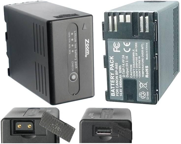 14,4V 6400mAh 92 Wh Li-ion, wskaźnik naładowania LED, dodatkowo wyjścia D-Tap (14,4V - 2A max.) i USB (5V -1A) - wysokiej jakości zamiennik akumulatora Canon marki ZOOM