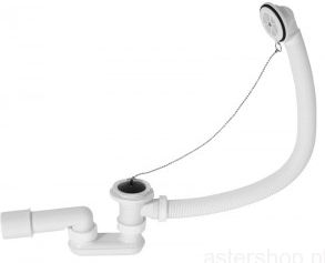 Zestaw odpływowy do wanny długość 570 mm zestaw odpływowo-przelewowy do wanny Zatyczka do wody z kolankiem obrotowym zamknięcie odpadów za pomocą korka Elastyczny wąż przelewowy Zastosowanie: Do odprowadzania wody z wanny do odpływu. Do wanien o standardowych rozmiarach. Do wanien z otworem odpływowym Ø52 mm. W zestawie: korpus syfonu z przelewem, biała plastikowa kratka przelewowa, korek PVC z łańcuszkiem, biała plastikowa kratka wylotowa, polipropylenowy korek antyzapachowy, odporny na wysoką temperaturę i chemikalia, zgrzewany wzdłużnie. Parametry techniczne: Nasadka zapachowa 50 mm. przepływ 43 l/min Odporność nasadki zapachowej na ciśnienie 588 Pa. Zatwierdzenie termiczne 95 °C. zdjęcie ilustracyjne