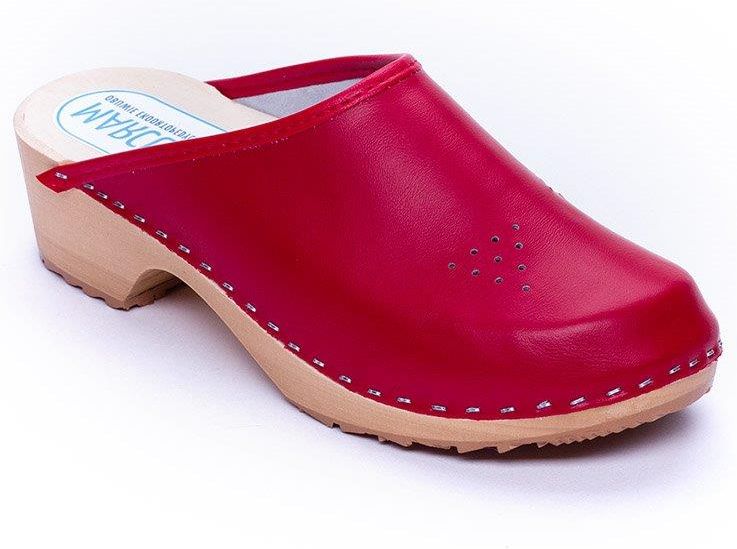 Chodaki, drewniaki damskie czerwone z wentylacją Janowiec Wielkopolski