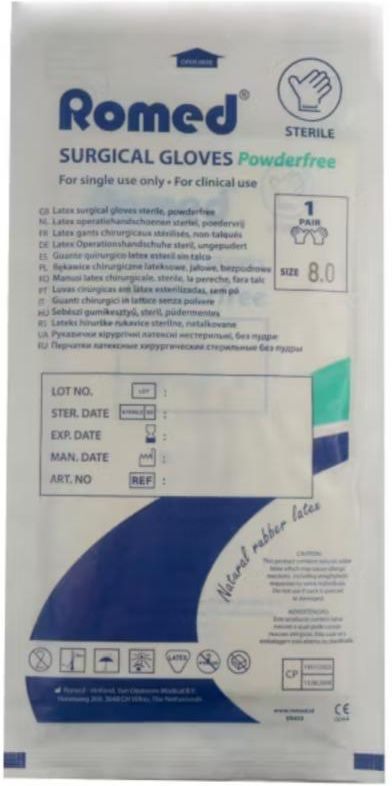 Van Oostveen Medical B.V. Romed Rękawice Chirurgiczne Lateksowe, Jałowe, Bezpudrowe 8,0, 1 Para Janowiec Wielkopolski