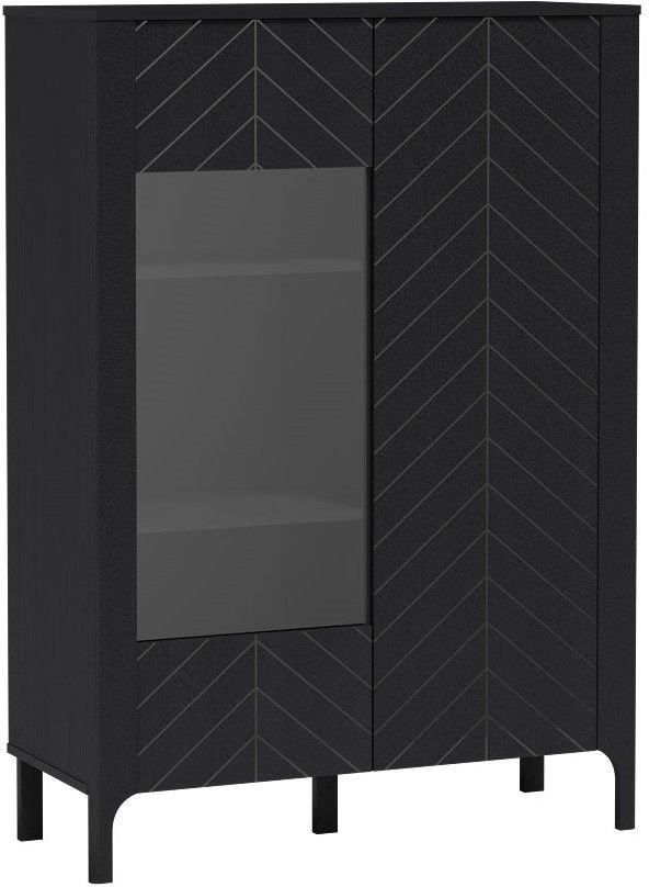 Dodaj elegancji i funkcjonalności do swojego wnętrza dzięki tej nowoczesnej witrynie. Wykonana z wysokiej jakości materiałów, posiada fronty z subtelnym wzorem w jodełkę, które nadają jej wyjątkowego charakteru. Połączenie czerni z unikalnym wzorem idealnie wpisuje się w nowoczesne i minimalistyczne aranżacje. Witryna wyposażona jest w pojemne półki, które pozwalają na przechowywanie i ekspozycję książek, dekoracji lub naczyń. Idealna do eksponowania ulubionych przedmiotów. Wykonana z trwałych materiałów, zapewnia stabilność i wytrzymałość na lata. Ten mebel doskonale sprawdzi się w salonie, jadalni lub gabinecie, podkreślając nowoczesny charakter wnętrza.