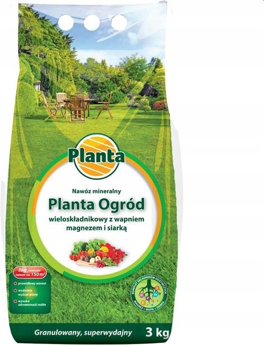 NAW PLANTA OGRÓD UNIWERSALNY 3kg Planta Ogród to wieloskładnikowy nawóz mineralny, przeznaczony do stosowania pod wszystkie gatunki roślin ozdobnych, warzyw oraz drzew i krzewów owocowych, uprawianych w przydomowych ogrodach i na działkach, a także do trawników. Nawóz zawiera optymalne proporcje …