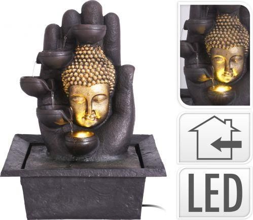 Fontanna Buddha marki ProGarden jest stylową i piękną dekoracją do Twojego domu. Ozdobna figurka prezentuje czarno-złotą postać Buddy. Jest idealnym dodatkiem dla miłośników buddyzmu, którzy chcą wprowadzić spokojną i kojącą atmosferę do swojego domu. Zawiera również lampki LED, dzięki czemu fontanna jest jeszcze bardziej atrakcyjna po zmroku. Kup ten produkt już teraz i ciesz się wspaniałym widokiem i kojącym dźwiękiem delikatnie płynącej wody! Kolor: czarno-złoty Materiał: poliżywica (żywica polimerowa) Wymiary: 30 x 24 x 40 cm (dł. x szer. x wys.) Model: Budda Oświetlenie LED Długość kabla: 1,5 m Zasilacz IP20 Do użytku w pomieszczeniach