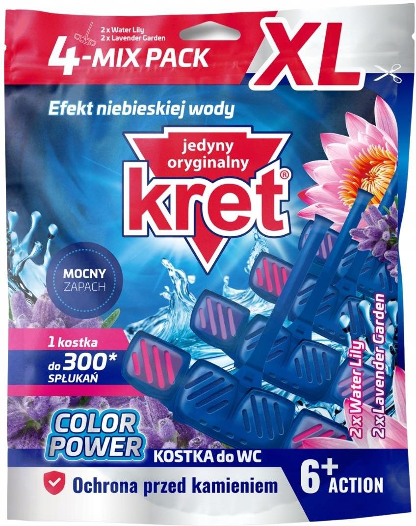 KRET Kostka w koszyczku MIX PACK KRET Kostka w koszyczku MIX PACK Water Lily / Lavender Garden 4x40g Zapas 4 kostek w koszyczku, mix zapachów: 2x Water Lily – połączenie wodnych i kwiatowych nut lilii, jaśminu, irysa i konwalii, które dają poczucie wyjątkowej świeżości. 2x Lavender Garden - zapach jak w tajemniczym ogrodzie, pełnym świeżej woni lawendy i róży. Kostki toaletowe KRET , dzięki nowoczesnej formule kompleksowo zadbają o Twoją toaletę 4-Mix Pack: aż cztery kostki w jednym opakowaniu! 6 funkcji w jednym produkcie - Formuła 6 ACTION, która kompleksowo dba o toaletę Wysoka wydajność kostki – do 300 spłukań! Technologia neutralizacji przykrych zapachów Skutecznie działanie czyszczące Obfita, aktywna piana Wygodny koszyczek – łatwy montaż Moc zapachu, skuteczność działania, komfort użytkowania – to właśnie KRET! KRET Kostka w koszyczku 4x40g Color Power w 4 wariantach zapachowych Kostki toaletowe Kret, dzięki nowoczesnej formule kompleksowo dbają o Twoją toaletę. Zapewniają świeży zapach i barwią wodę na niebiesko. Teraz w mega opakowaniu i miksie zapachów! 4 warianty zapachowe Lemon Harmony – świeżości cytrusów wzbogacona o nuty zielonych liści i werbeny. Water Lily – połączenie wodnych i kwiatowych nut lilii, jaśminu, irysa i konwalii, które dają poczucie wyjątkowej świeżości Arctic Water – morski zapach pełen świeżości wzbogacony o nuty kwiatowe i drzewa cedrowego. Lavender Garden - zapach jak w tajemniczym ogrodzie, pełnym świeżej woni lawendy i róży. Do 300 spłukań z jednej kostki – wydajność, która robi różnicę KRET Kostka w koszyczku MIX PACK Water Lily / Lavender Garden 4x40g Cztery kostki w jednym opakowaniu to czterokrotnie dłuższa świeżość, mniej plastikowych odpadów i pewność, że zapas zawsze masz pod ręką. 6 ACTION Zapewnia świeży, zapach Zawiera składnik neutralizujący przykry zapach - specjalny składnik eliminuje to, czego nie chcesz czuć Zapobiega osadzaniu się kamienia i brudu Aktywnie czyści - – skutecznie usuwa zabrudzenia z muszli Tworzy obfitą pianę - która rozprowadza zapach i czystość równomiernie Zapewnia higieniczną czystość - – świeżość, którą widać i czuć Wystarcza aż na 300 spłukań, zapewniając długotrwałą świeżość i czystość. Dr. Miele Cosmed Group S.A - Jakość gwarantowana! Wiemy, że sukces tkwi w ludziach. To na ich wiedzy, doświadczeniu i zaangażowaniu opiera się stały rozwój naszej organizacji. Naszą misją jest dostarczanie produktów najwyższej jakości, tworzonych przez ludzi dla ludzi, przy użyciu najnowocześniejszych technologii i z troską o środowisko Kosmetyki i produkty chemii gospodarczej Dr. Miele Cosmed Group S.A. to jakość i odpowiedzialna produkcja. Dla Nas - to Twój świadomy wybór Produkt pochodzi z oficjalnej dystrybucji firmy Dr Miele Cosmed Group S.A Zawsze postępuj zgodnie z instrukcją na etykiecie. Informacje, które odczytasz na etykiecie Nazwę Producenta, dane kontaktowe - adres pocztowy i elektroniczny Datę, do której dany produkt, przechowywany w odpowiednich warunkach, zachowuje w pełni swoje pierwotne właściwości Piktogramy określające specjalne środki ostrożności Numer partii produktu lub oznaczenia pozwalające na identyfikację produktu Nazwę funkcji produktu Wykaz składników Dozowanie i przechowywanie produktu Karty charakterystyki dotyczące produktu znajdziesz na Naszej stronie internetowej Dr Miele Cosmed Group