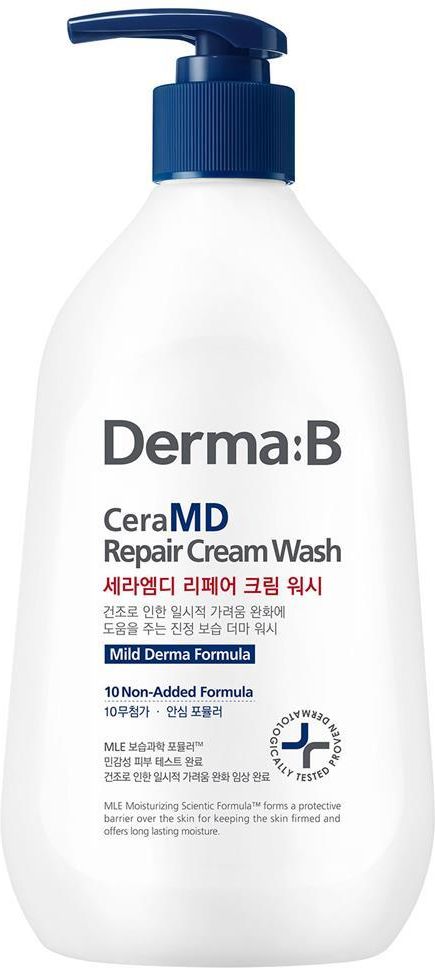 Derma:B CeraMD Repair Cream Wash to kremowy produkt do mycia twarzy i ciała, stworzony dla wrażliwej, swędzącej i suchej skóry. Łagodna formuła o kremowej konsystencji, przekształca się w pianę, która delikatnie rozprowadza się na skórze, nie powodując podrażnień, jednocześnie ją nawilżając i ujędrniając. Linia CeraMD została stworzona, aby łagodzić swędzenie skóry spowodowane suchością. Tworzy barierę ochronną na skórze i zapewnia długotrwałe nawilżenie. DERMA:B CeraMD Cream Wash to kremowy środek do mycia ciała opracowany w celu ukojenia i złagodzenia swędzącej i wrażliwej skóry spowodowanej suchością. Opatentowane składniki Dualguard-7 i Cerapanthe wzmacniają barierę skórną. Oleista formuła przekształca się w miękką piankę, zapewniając delikatne, ale skuteczne oczyszczanie. Unikalna formuła MLE wilgoć nauki pozwala na szybkie wchłanianie, dalsze nawilżenie suchej i wrażliwej skóry. Składniki, które pokochasz: Gliceryna: wielozadaniowy składnik zapewniający zdrową, sprężystą skórę. Optymalizuje nawilżenie skóry, chroni błony komórkowe i lipidy oraz łagodzi podrażnioną skórę. Masło Shea: emolient, który intensywnie nawilża skórę. Działa regenerująco, łagodząco na skórę i jest bogaty w przeciwutleniacze. Olej z pestek winogron: olej na bazie roślin, który sprawia, że skóra staje się miękka i elastyczna. Bogate źródło polifenoli, kwasów tłuszczowych naprawiających barierę ochronną i witaminy E dla skutecznej ochrony skóry. Ochrona skóry wrażliwej CeraMD Cream Wash pomyślnie przeszedł test na podrażnienia skóry wrażliwej i nie zawiera 10 szkodliwych składników, takich jak parabeny, fenoksyetanol, barwniki, substancje zapachowe itp. Wilgotna, mleczna formuła łagodzi swędzenie, bardzo suchą i wrażliwą skórę bez podrażnień. Sposób użycia: Nanieś na skórę i wmasuj w ciało, a następie spłucz wodą. Składniki: Water, Sodium Cocoyl Isethionate, Glycerin, Disodium Cocoamphodiacetate, Sodium Chloride, Hydroxypropyl Starch Phosphate, Potassium Cocoyl Glycinate, Citric Acid, Cetearyl Olivate, Dipropylene Glycol, 1,2-Hexandiol, Sorbitan Olivate, Hydroxyacetophenone, Panthenol, Polyquaternium-67, Polyquaternium-10, Hexylene Glycol, Disodium EDTA, Butyrospermum Parkii (Shea) Butter, Caprylamide MEA, Vitis Vinifera (Grape) Seed Oil, Myristoyl/Palmitoyl Oxostearamide/Arachamide MEA, Butylene Glycol, Hydrogenated Lecithin, Olea Europaea (Olive) Fruit Oil, Glycolipids, Ceramide NP, Candida Bombicola/Sucrose/Vegetable Acid Ester Ferment.