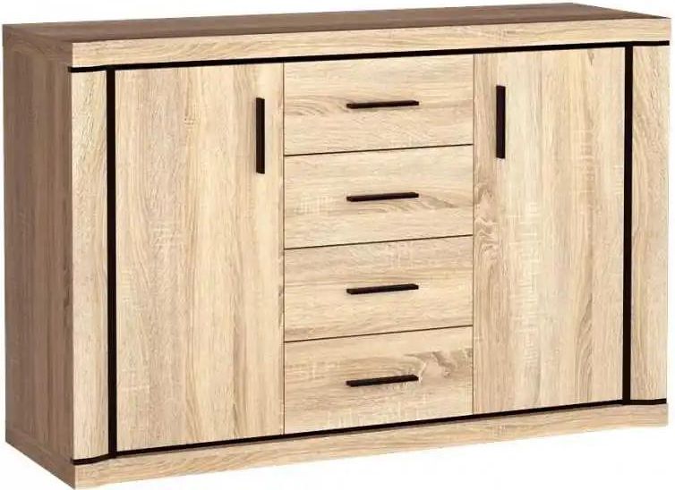 Nowoczesna, średnia komoda dwudrzwiowa z 4 szufladami DALLAS D5, polskiego producenta JARSTOL. Elegancka i bardzo funkcjonalna. Wykonana z laminowanej płyty meblowej w kolorze dąb sonoma. Komoda posiada 2 półki zamykane drzwiczkami oraz 4 pojemne szuflady, które pozwalają na wygodne ułożenie …