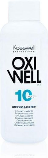 Kosswell Oxiwell 3% - woda utleniona w osnowie kremowej do wykonywania zabiegów fryzjerskich na włosach. Posiada stabilizatory utleniaczy najwyższej jakości stosowanych do koloryzacji i rozjaśniania włosów. Dzięki temu sprawia że zabiegi chemiczne są bezpieczniejsze i łagodniejsze dla struktury włosów. Woda utleniona występuje w kilku stężeniach: 10vol. - 3%, 20vol. - 6%, 30vol. - 9%, 40vol. -12%.