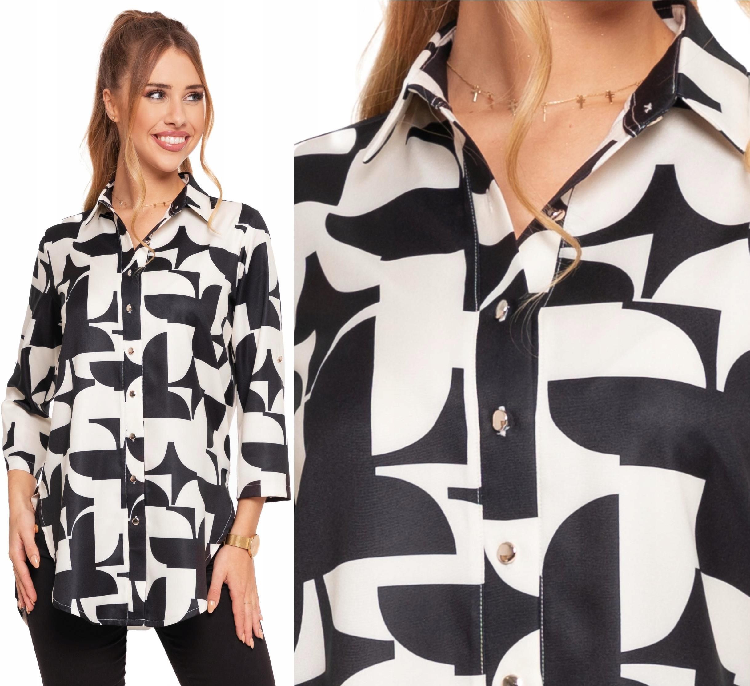 Koszula Damska z Rękawem 3/4 Elegancka Wzory Rozpinana Klasyczna MORAJ M Jarocin