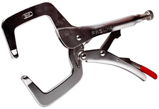# Szczypce spawalnicze 280mm typu "C" PROLINE Nr kat. PROF-28253 Regulacja siły zacisku i odległości szczęk. Szczęki ukształtowane w zależności od przeznaczenia. Wykonane z wysokie jakości stali chromowo-wanadowej, niklowane. Parametry techniczne: Długość: 280mm Maksymalna rozwartość szczęk: 86mm #