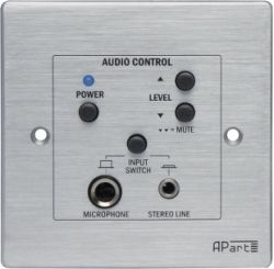 Panel ścienny zdalnego sterowania SDQ 5 PIR / regulacja głośności + on/off + wejście lokalne liniowe i mikrofonowe – kabel CAT-5 APart Audio ACPL to przewodowy panel zdalnego sterowania z lokalnym wejściem sygnału, przeznaczony do aktywnego zestawu głośnikowego SDQ5Pir. Sterownik ten pozwoli zapomnieć o problemach związanych z używaniem sprzętu audio w powszechnie dostępnych miejscach użytkowanych przez różne osoby w relatywnie krótkich odstępach czasu. Nie będzie już więcej zmartwień z powodu zagubionych pilotów zdalnego sterowania, zużytych baterii czy braku reakcji pilota w warunkach silnego światła słonecznego. Przedni panel ACPL wykonano ze szczotkowanego aluminium, dzięki czemu dobrze komponuje się z wnętrzem o dowolnym wystroju. za pomocą sterownika można włączać i wyłączać zestaw SDQ5Pir, regulować poziom głośności oraz wyciszać za pomocą przycisku „mute”. Diodowy wskaźnik zasilania pokazuje status zasilania aktywnego zestawu głośnikowego. Połączenie z zestawem SDQ5Pir odbywa się za pomocą standardowego przewodu typu CAT5, który zapewnia także zasilanie sterownika. Sterownik wyposażony jest w wybieralne wejście mikrofonowe ze złączem typu jack oraz stereofoniczne wejście liniowe ze złączem typu mini-jack dla przenośnych komputerów oraz mobilnych urządzeń audio. Specjalnie pod kątem laptopów i odtwarzaczy MP3 wejście sterownika ACPL ma zwiększoną czułość. Dla uzyskania lepszej zrozumiałości komunikatów głosowych oraz dla zapobieżenia zniekształceniom wejście mikrofonowe uzupełniono o filtr górnoprzepustowy Dla zapewnienia łatwej instalacji dostępne są dwa rodzaje ściennych obudów montażowych: E-MODIN do instalacji w ścianach gipsowych oraz N-MODIN do instalacji w ścianach z cegły. DANE TECHNICzNE Wymiary (wys. x szer. x głęb.): 85 x 85 x 28 mm Waga: 90 g Podłączenie: przewód typu CAT5 o maksymalnej długości 100 m; dopuszczalna maksymalna długość przewodu zależy od wielu czynników, takich jak jakość przewodu oraz poziom zewnętrznych zakłóceń (np. od linii wysokiego napięcia)