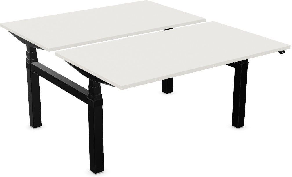 Nowoczesne, ergonomiczne i praktyczne stanowisko workbench dla dwóch użytkowników z elektryczną regulacją wysokości eModel 2.0 H-LEG M RC na podstawie typu "H" firmy Nowy Styl. Elektryczna regulacja wysokości biurka przy pomocy przycisków lub panelu sterowania. Dwa blaty wykonane z płyty melaminowej o wymiarach 140x80 cm, grubość 25 mm. Blaty stałe (bez przesuwu). Kilkanaście kolorów do wyboru, dodatkowo obrzeże blatu może być w innym kolorze. Podstawa typu "H" trzysegmentowa wykonana z metalu - cztery kolory do wyboru.