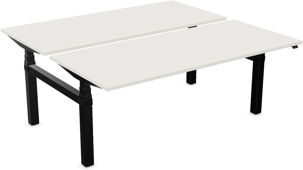 Nowoczesne, ergonomiczne i praktyczne stanowisko workbench dla dwóch użytkowników z elektryczną regulacją wysokości eModel 2.0 H-LEG M RC na podstawie typu "H" firmy Nowy Styl. Elektryczna regulacja wysokości biurka przy pomocy przycisków lub panelu sterowania. Dwa blaty wykonane z płyty melaminowej o wymiarach 180x80 cm, grubość 25 mm. Blaty stałe (bez przesuwu). Kilkanaście kolorów do wyboru, dodatkowo obrzeże blatu może być w innym kolorze. Podstawa typu "H" trzysegmentowa wykonana z metalu - cztery kolory do wyboru.