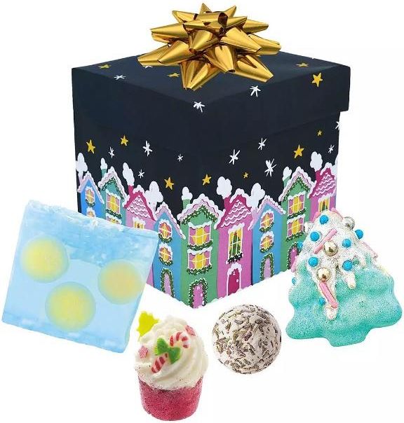 Bomb Cosmetics Zestaw Starry Night Bomb Cosmetics Zestaw Upominkowy zawiera następujące kosmetyki: Kula do kąpieli Och Christmas Tree, 160g Kula do kąpieli Mint Condition, 50g Kula do kąpieli Lavender, 30g Mydło Snowglobe, 100g Wszystkie produkty z zestawu są wykonane ręcznie. Posiadają wspaniały aromat i urokliwy wygląd. Kosmetyki zawierają naturalne olejki eteryczne i wspaniale pielęgnują ciało. Całość zapakowana w urocze opakowanie w formie prezentu.
