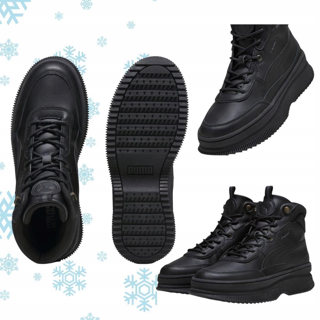 Buty Puma Mayra 39231602 - czarne Buty damskie Puma Mayra 39231602 - czarne Damskie buty Puma Mayra. Damskie buty Puma Mayra to model przeznaczony do codziennego użytku. Obuwie wykonano z połączenia skóry licowej i syntetycznej co zapewnia trwałość. Konstrukcja z wysoką kostką doskonale wpisuje się …