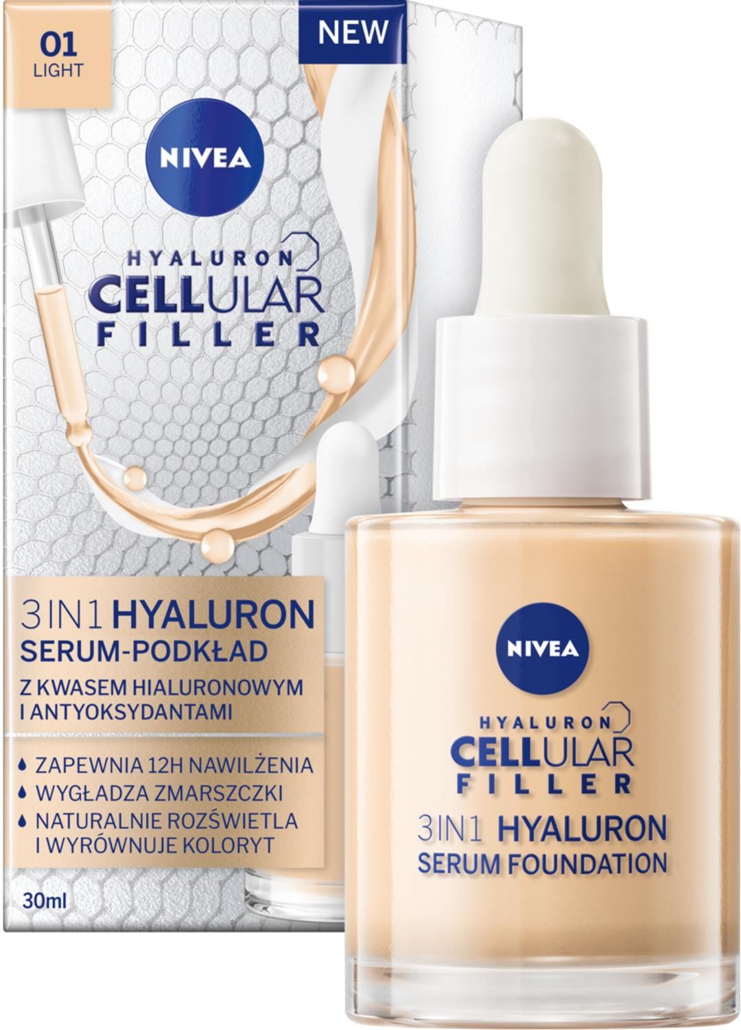 Hyaluron Cellular Filler 3W1 Serum-Podkład Do Twarzy 01 Light 30ml Jarosław
